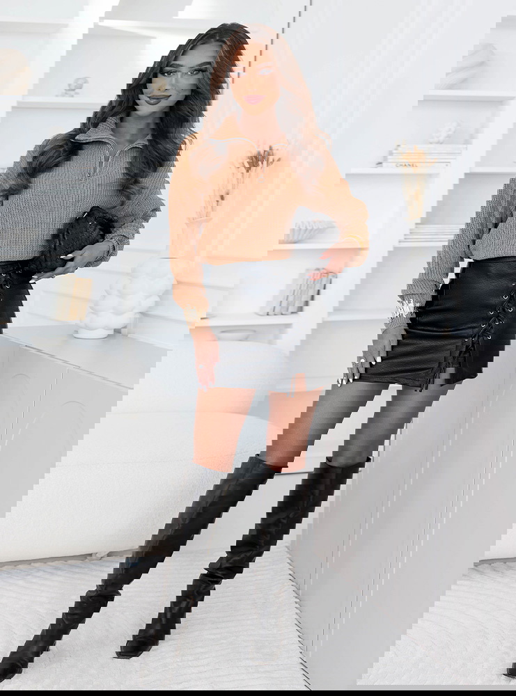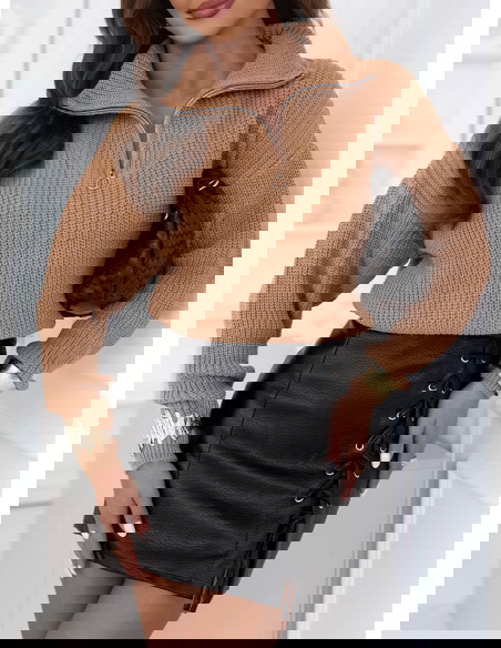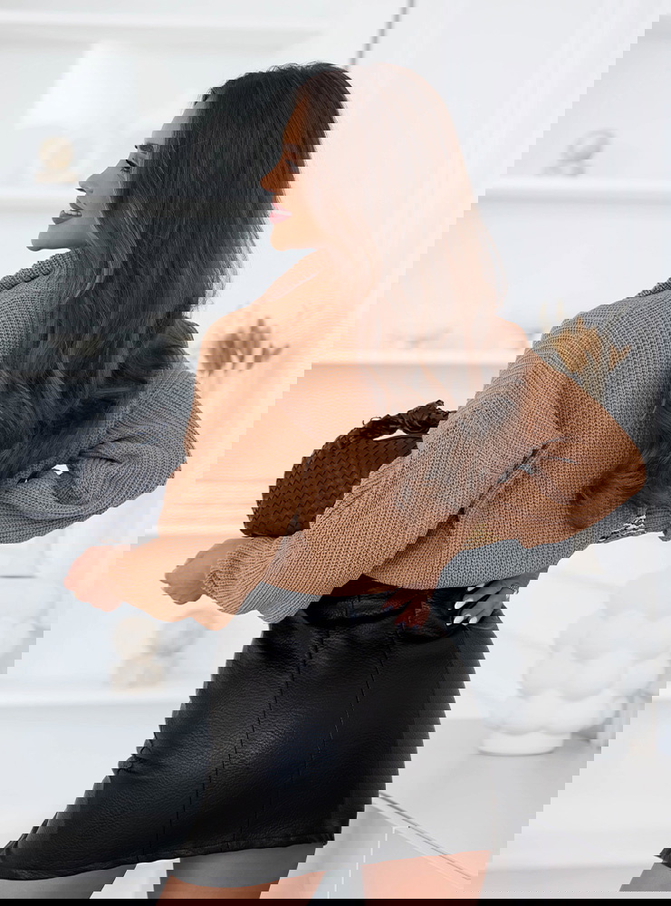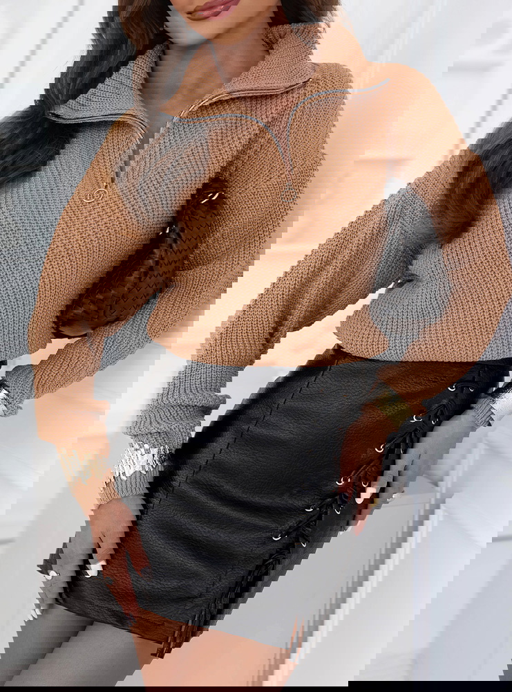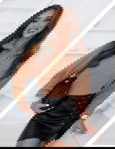 Sweter z zamkiem Raelle - mocha mousse to model, który łączy w sobie wygodę i nowoczesny styl. Jego ciepły odcień brązu świetnie wpisuje się w jesienny klimat, dodając stylizacji przytulności i elegancji. Zamek przy dekolcie nadaje mu sportowego charakteru, a jednocześnie pozwala na różne sposoby noszenia – od luźniejszego, casualowego looku po bardziej dopracowany. To element garderoby, który sprawia, że codzienne stylizacje nabierają modnego akcentu. Sweter prezentuje się lekko, a jednocześnie przyciąga uwagę ciekawym detalem. To propozycja dla kobiet, które lubią uniwersalne rozwiązania, ale zawsze stawiają na coś, co wyróżnia. Mocha mousse to kolor, który z łatwością zestawisz z klasyczną czernią, beżem czy kremem. Jesienią taki sweter stanie się bazą wielu wygodnych i stylowych outfitów. To model, po który będziesz sięgać często, bo świetnie sprawdzi się w wielu sytuacjach.