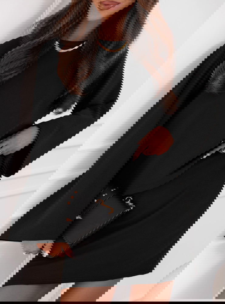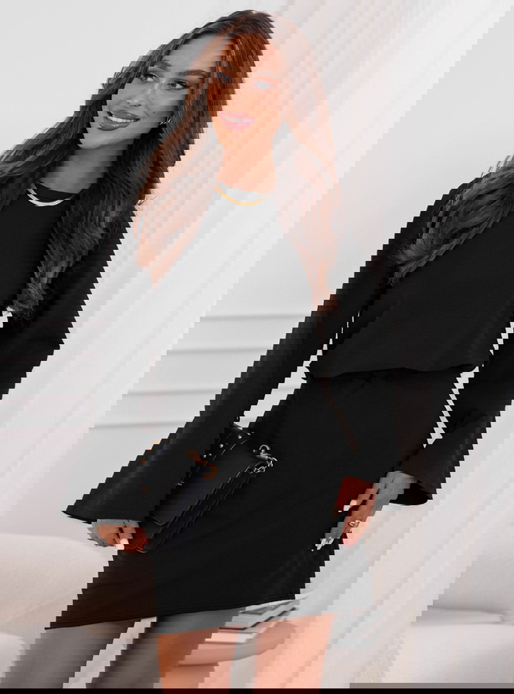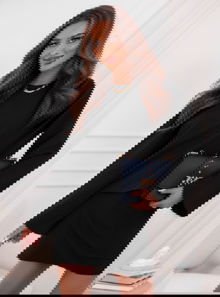 Czarny komplet bluzka i spódniczka Daybree to elegancka propozycja, która łączy w sobie prostotę i nowoczesny charakter. Klasyczna czerń sprawia, że zestaw prezentuje się niezwykle stylowo i ponadczasowo. To komplet, który świetnie podkreśla sylwetkę, a jednocześnie pozostaje bardzo wygodny. Luźniejsza bluzka dodaje całości lekkości i równoważy dopasowaną spódniczkę. Rozszerzane rękawy są modnym akcentem, który nadaje całości wyjątkowego charakteru. To propozycja, która sprawdzi się w wielu sytuacjach, od codziennych po bardziej wyjątkowe. Minimalistyczny krój sprawia, że zestaw jest niezwykle uniwersalny. To komplet, który pozwala na tworzenie różnych stylizacji w zależności od dobranych dodatków. W nim każda kobieta poczuje się elegancko i kobieco. To idealne rozwiązanie dla tych, które cenią wygodę, ale nie chcą rezygnować ze stylu.