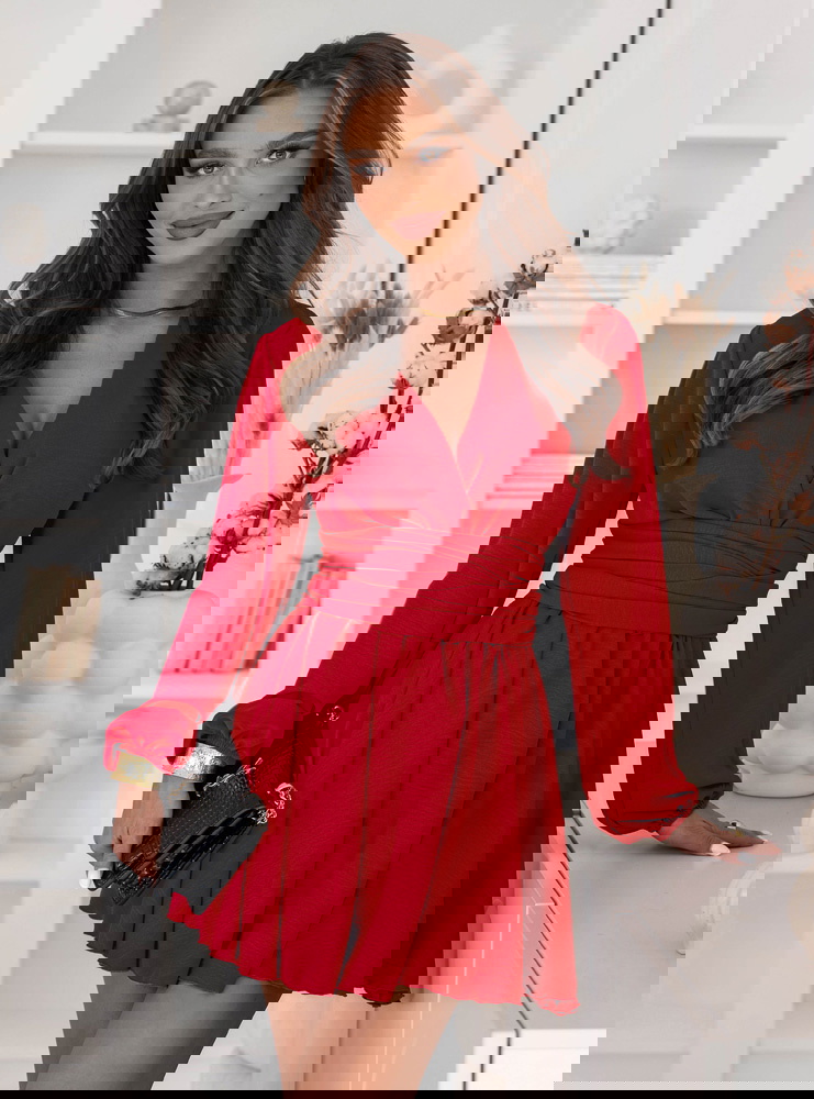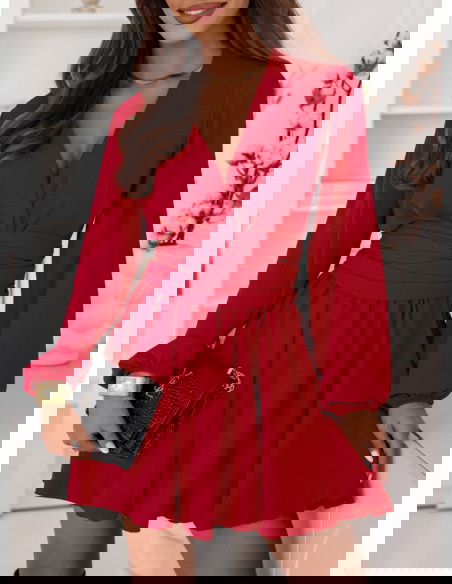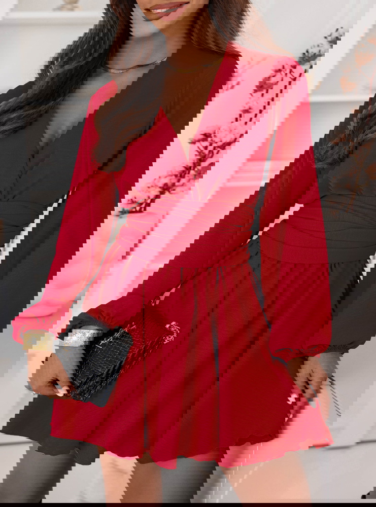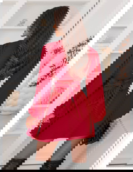 Malinowy kombinezon jak sukienka z bufiastymi rękawami Nataleigh