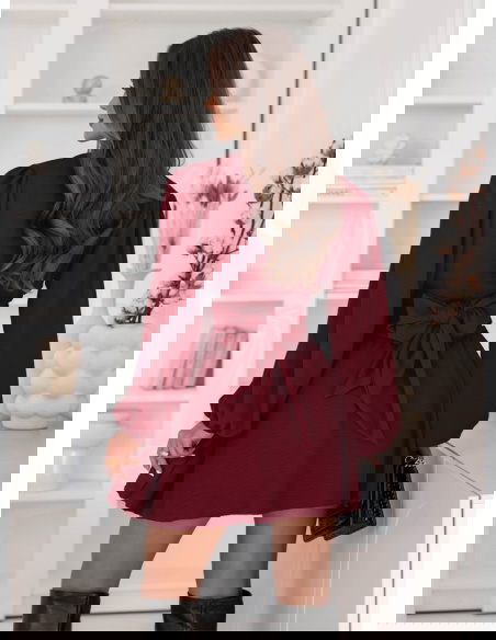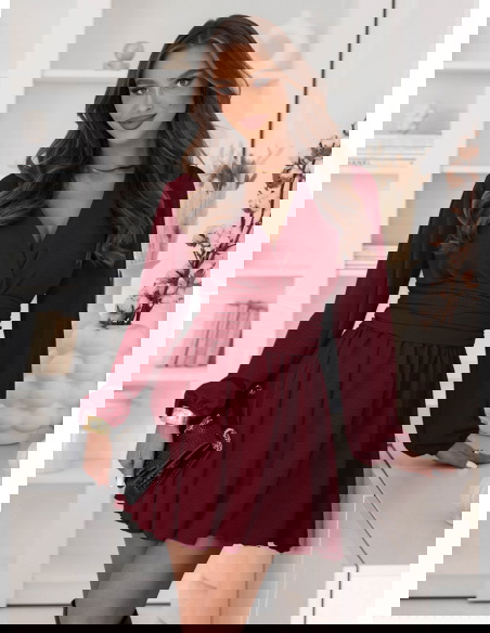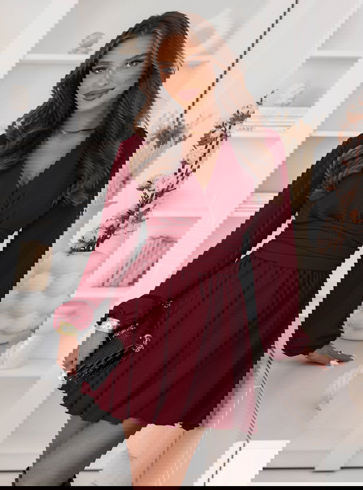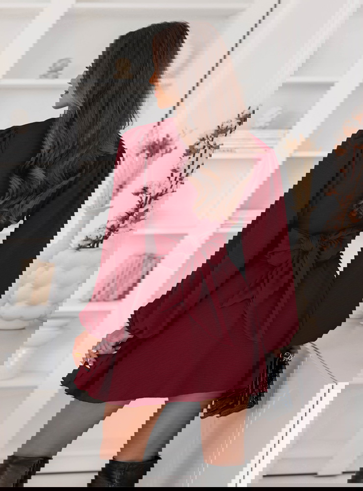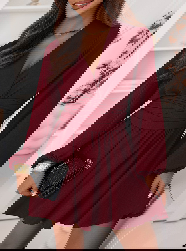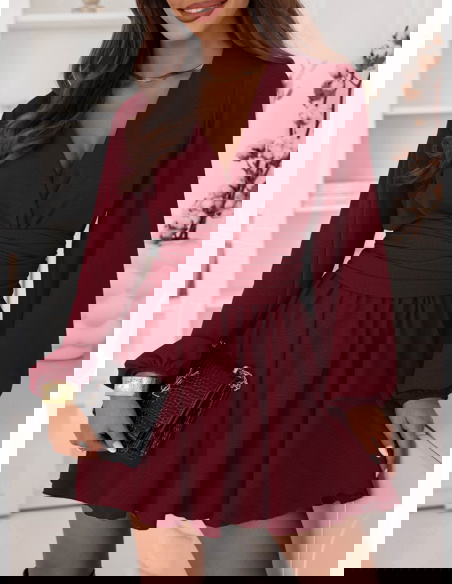 Bordowy kombinezon jak sukienka z bufiastymi rękawami Nataleigh