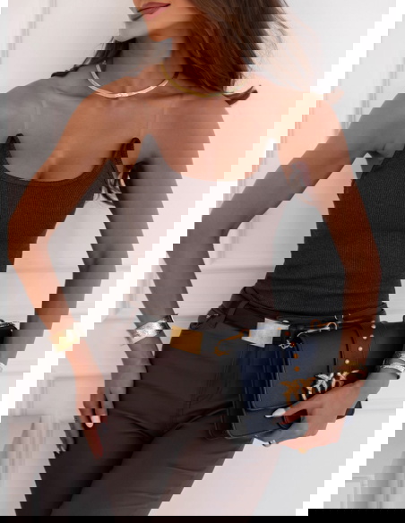 Czekoladowa prążkowana bluzka na ramiączkach Kaytlyn