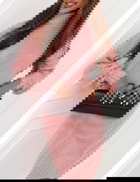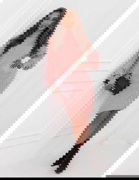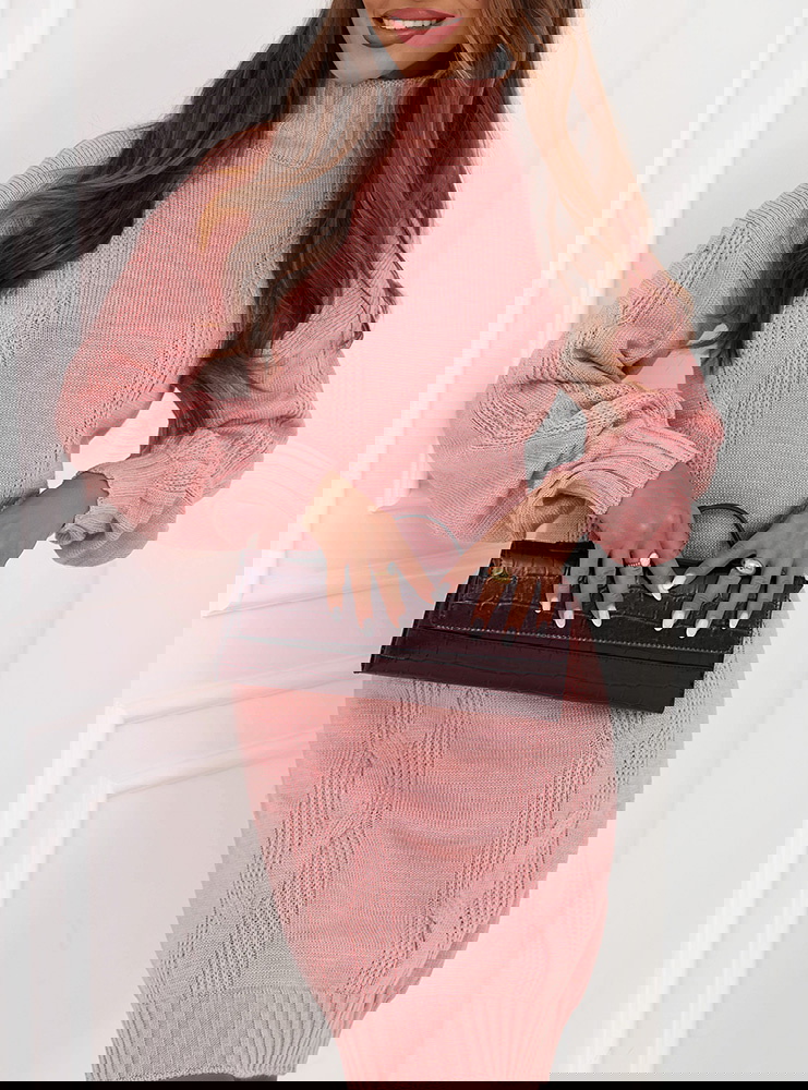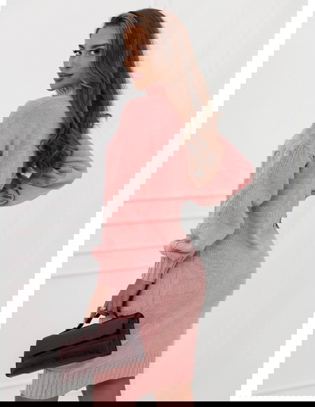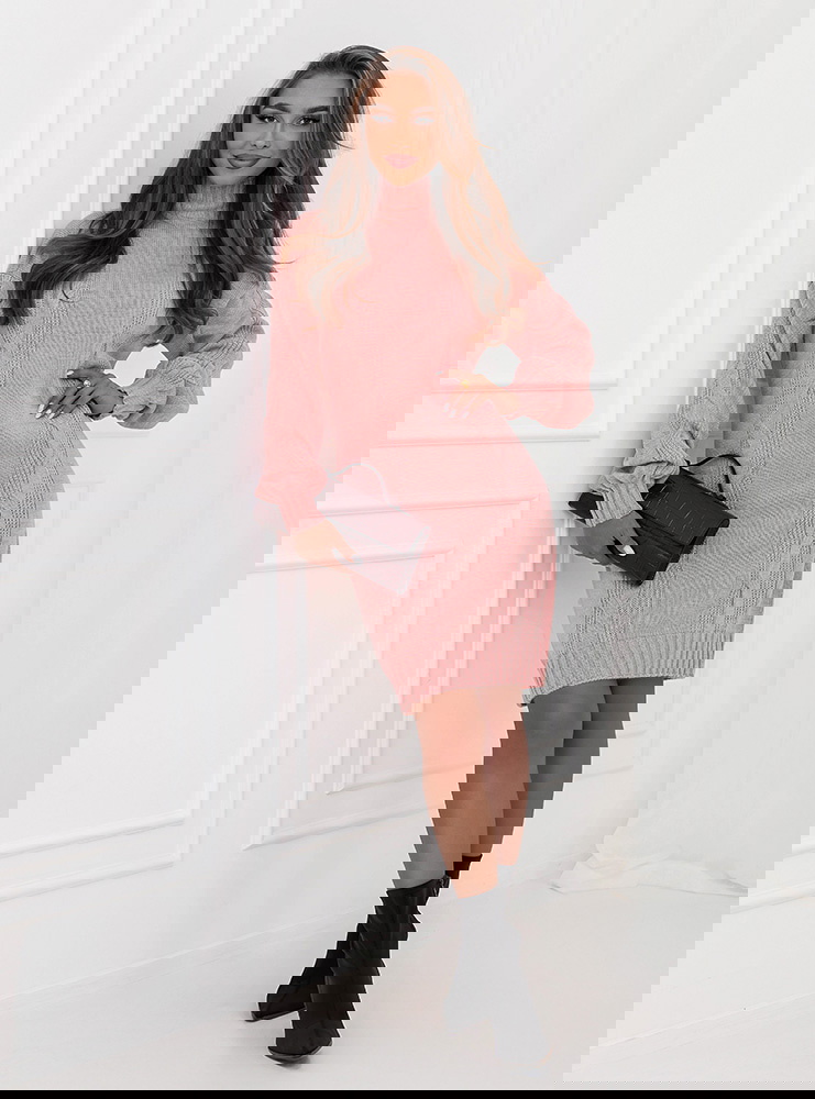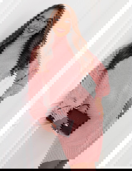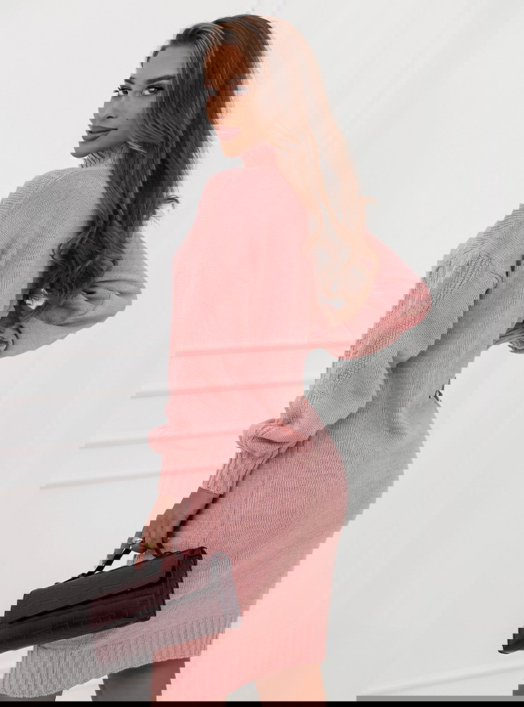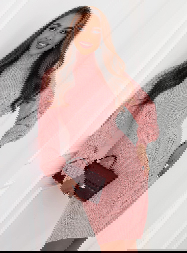 Pudrowa swetrowa sukienka z golfem Malikah świetnie sprawdzi się na co dzień. Możesz ją założyć do pracy, na uczelnię czy na spotkanie z przyjaciółką.