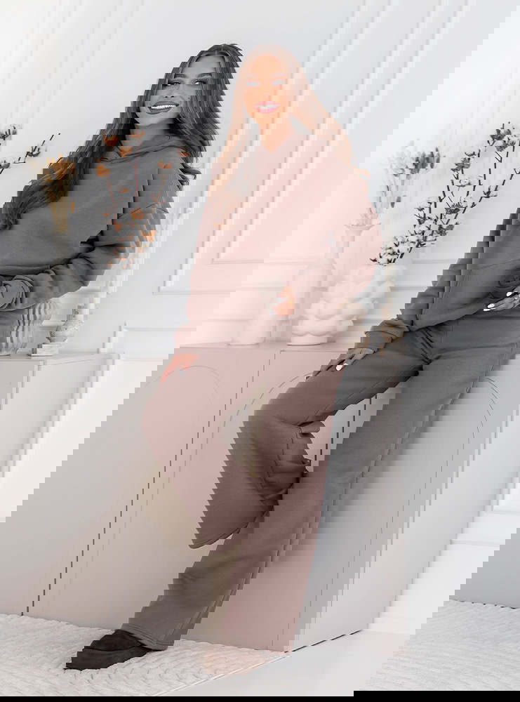 Komplet dresowy bluza z kapturem i spodnie Birdinee - mocha mousse