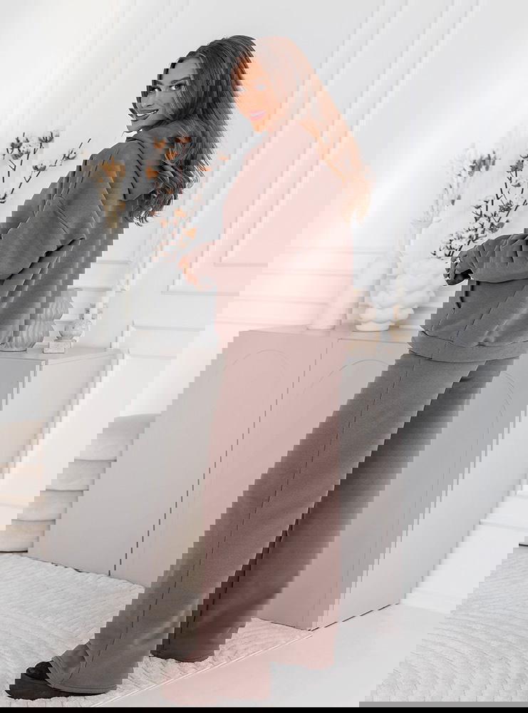 Komplet dresowy bluza z kapturem i spodnie Birdinee - mocha mousse to idealna propozycja dla kobiet, które cenią sobie wygodę w stylowym wydaniu. Ciepły, stonowany odcień mocha mousse sprawia, że całość nabiera elegancji, mimo sportowego charakteru. Bluza z praktycznym kapturem i dużą kieszenią dodaje przytulności i casualowego luzu. Spodnie o prostym, lekko luźnym kroju gwarantują komfort i swobodę ruchów. To zestaw, który idealnie wpisuje się w jesienne klimaty – przyjemny, praktyczny i jednocześnie modny. Komplet dresowy w takim wydaniu świetnie łączy prostotę i funkcjonalność, a zarazem prezentuje się stylowo. To model, który sprawdzi się nie tylko w domu, ale także w codziennych aktywnościach. Dzięki uniwersalnemu kolorowi z łatwością zestawisz go z innymi elementami garderoby. To wybór, który pozwoli Ci czuć się wygodnie i wyglądać modnie w każdej sytuacji.