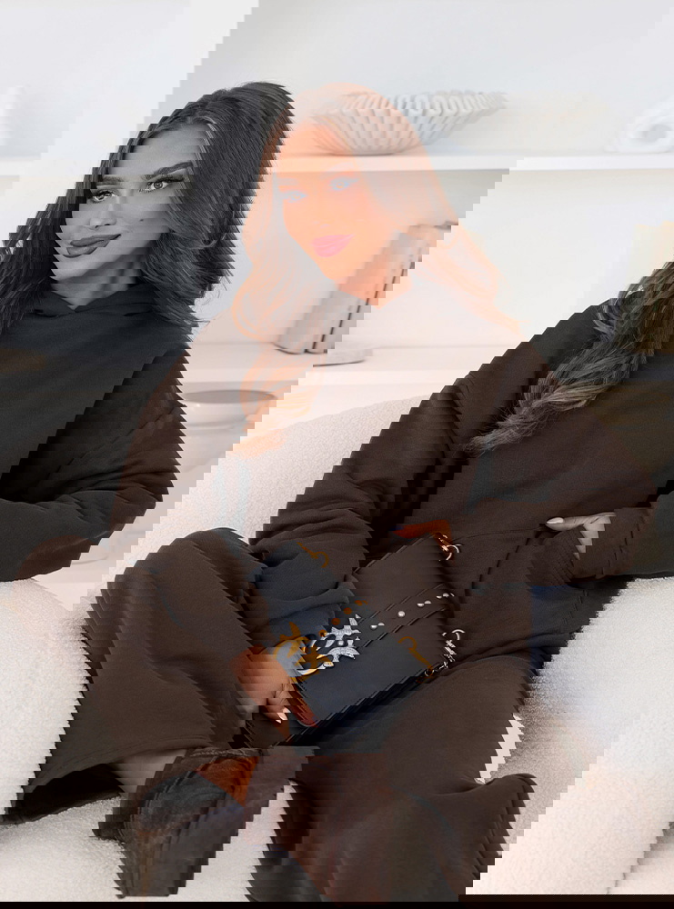 Czekoladowy komplet dresowy bluza z kapturem i spodnie Birdinee to propozycja, która łączy w sobie wygodę i styl. Jego głęboki odcień brązu doskonale wpisuje się w jesienny klimat, dodając całości przytulności i elegancji. Bluza z kapturem wprowadza sportowy akcent, a luźny fason zapewnia swobodę ruchów. Spodnie o prostym kroju nadają całości lekkości i sprawiają, że komplet prezentuje się nowocześnie. To zestaw, który od razu przyciąga uwagę swoim minimalizmem, a jednocześnie wyróżnia się wyrazistym charakterem. Idealnie sprawdzi się w codziennych sytuacjach, kiedy chcesz wyglądać modnie, ale czuć się komfortowo. Jego uniwersalny fason pozwala na wiele możliwości stylizacyjnych – od casualowych po bardziej streetwearowe. To komplet, który w prosty sposób podkreśli Twój indywidualny styl. Wystarczy kilka dodatków, aby nadać mu nowego charakteru. To must-have w szafie każdej kobiety, która ceni praktyczność w połączeniu z modnym wyglądem.