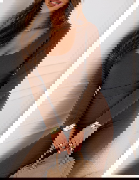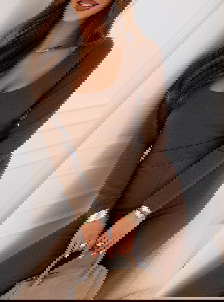 Czekoladowy komplet bluzka i spodnie Madelenaa to elegancka propozycja, która świetnie łączy wygodę z kobiecym stylem. Głęboki, czekoladowy odcień idealnie wpisuje się w jesienny klimat i nadaje całości klasycznego uroku. Dopasowana bluzka z długim rękawem podkreśla sylwetkę, a spodnie z rozszerzanymi nogawkami dodają lekkości i wydłużają optycznie nogi. To zestaw, który prezentuje się harmonijnie i z klasą, a przy tym pozostaje niezwykle komfortowy. Jego prosty, ale efektowny krój sprawia, że można go nosić zarówno na co dzień, jak i na bardziej wyjątkowe okazje. To komplet, który nie wymaga wielu dodatków – sam w sobie stanowi modny, spójny outfit. Jesienią sprawdzi się idealnie w połączeniu z botkami lub eleganckimi butami na obcasie. To propozycja, która przyciąga uwagę swoją prostotą i wyrafinowaniem. Każdy szczegół został dopracowany, aby całość wyglądała nowocześnie i stylowo.