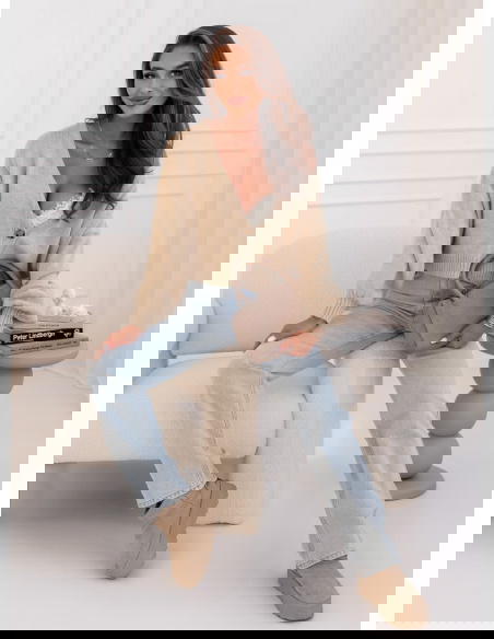 Beżowy sweter zapinany na guziki Elinoree to must-have w jesiennej garderobie. Jego prosty krój i ponadczasowy kolor sprawiają, że pasuje do wszystkiego. Guziki dodają mu klasycznego uroku, a luźniejszy fason – swobody.