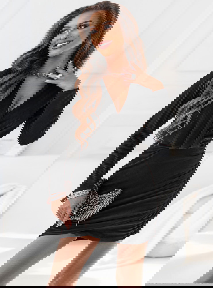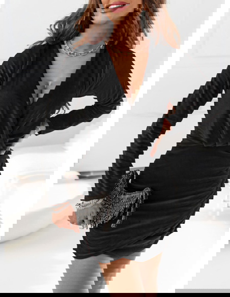 Czarna welurowa sukienka z marszczeniami po bokach Leshell