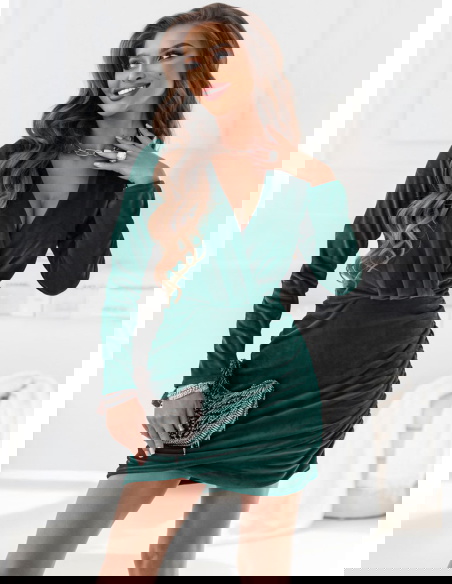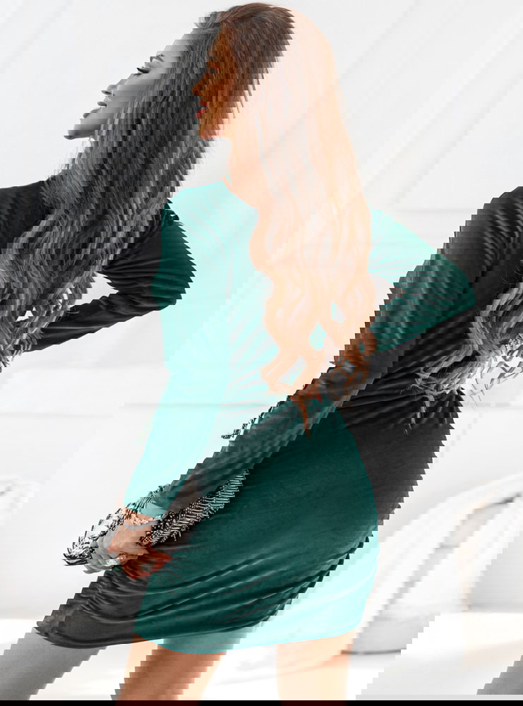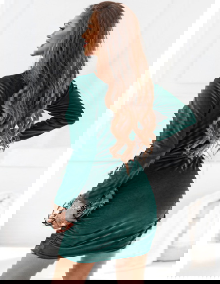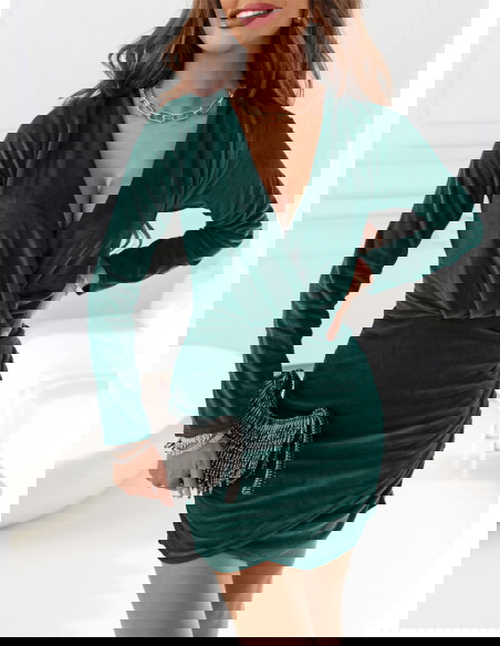 Welurowa sukienka z marszczeniami po bokach Leshell - butelkowa zieleń
