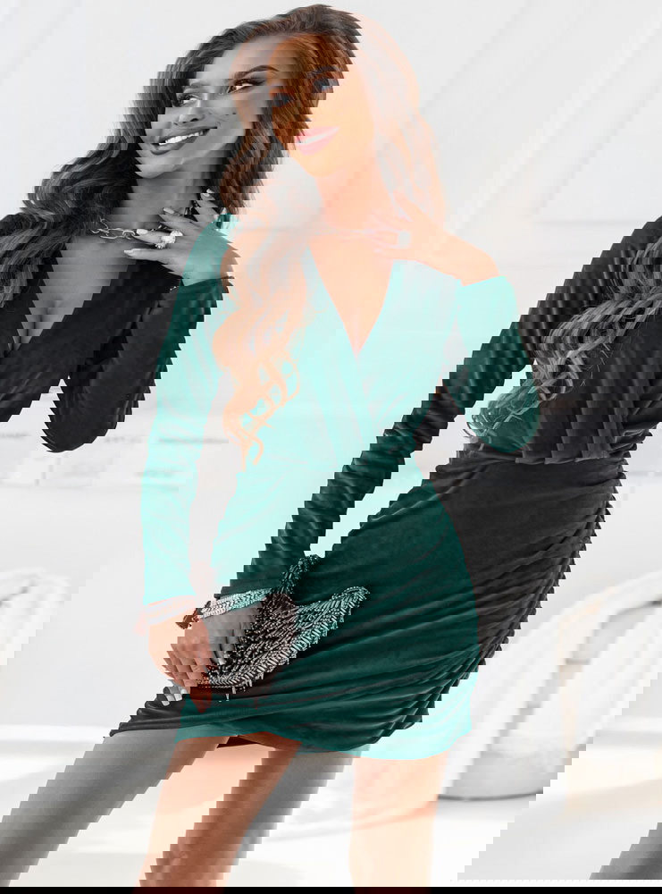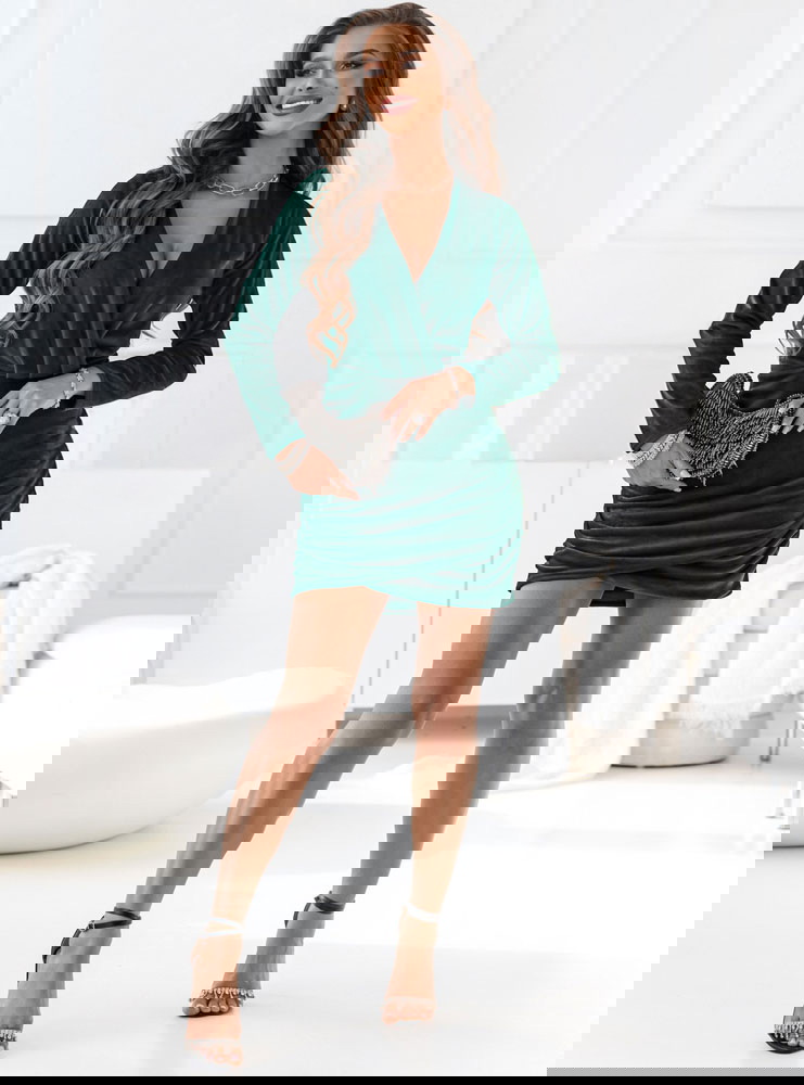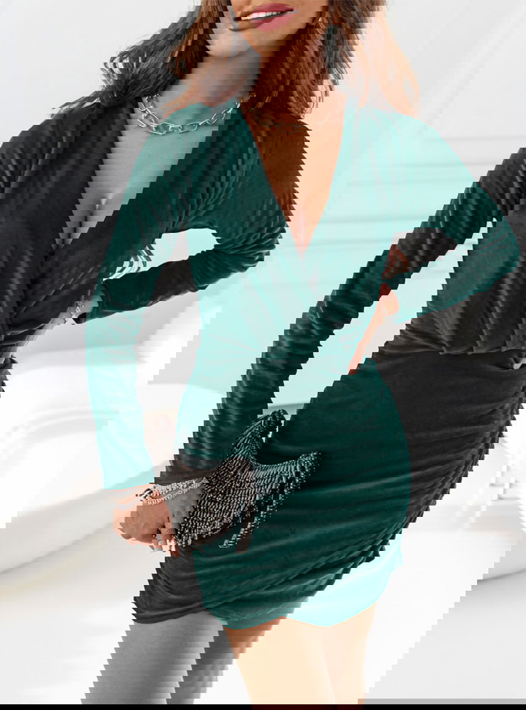 Welurowa sukienka z marszczeniami po bokach Leshell - butelkowa zieleń to idealny wybór na wyjątkowe chwile. Sprawdzi się podczas przyjęć, randek czy kolacji w eleganckim gronie.