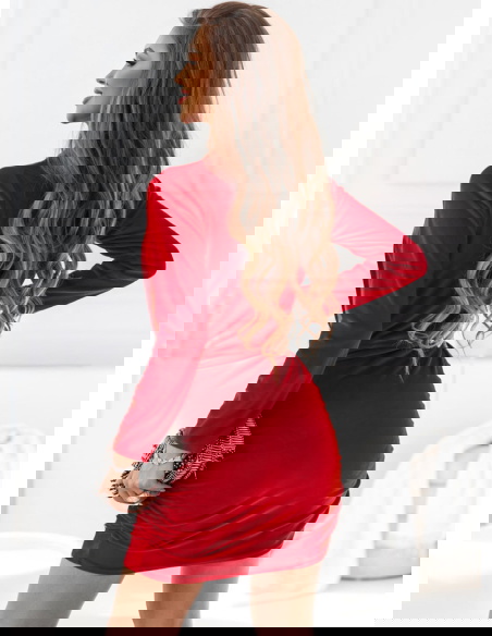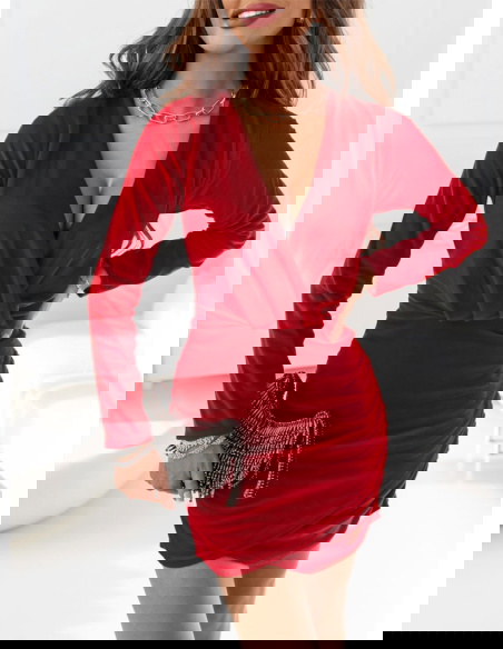 Malinowa welurowa sukienka z marszczeniami po bokach Leshell