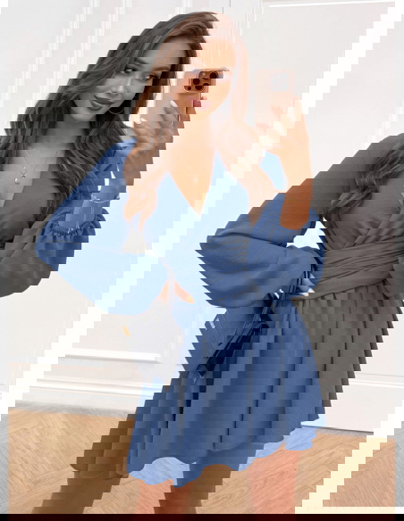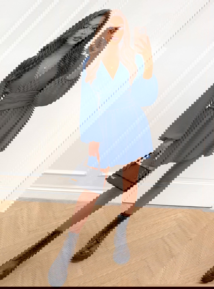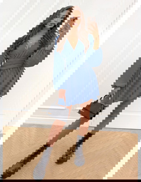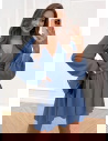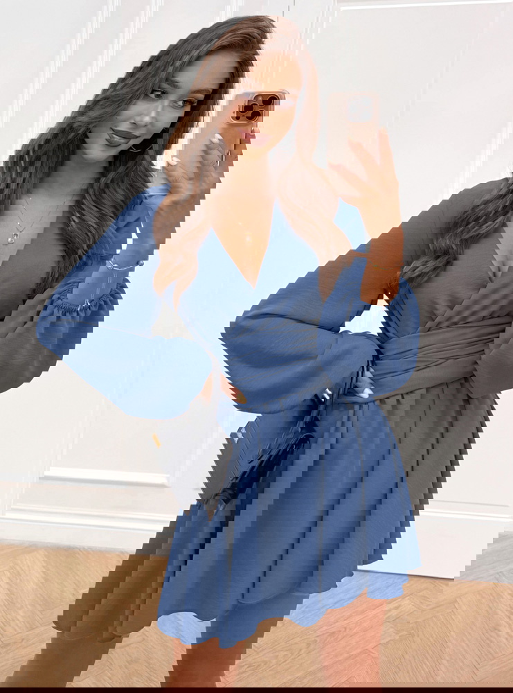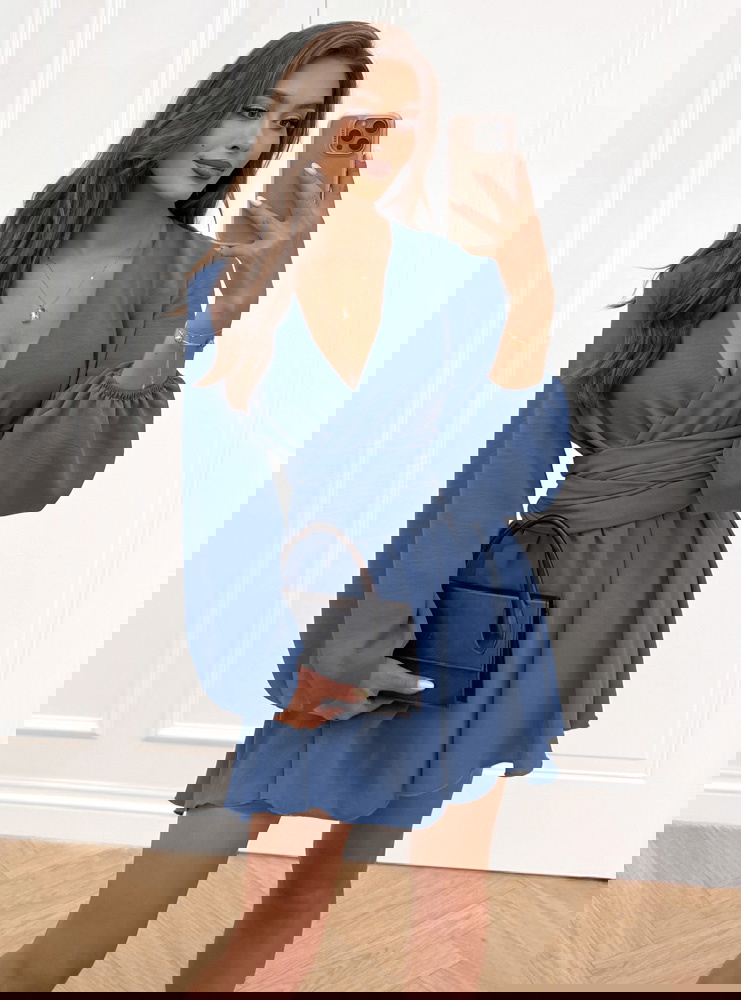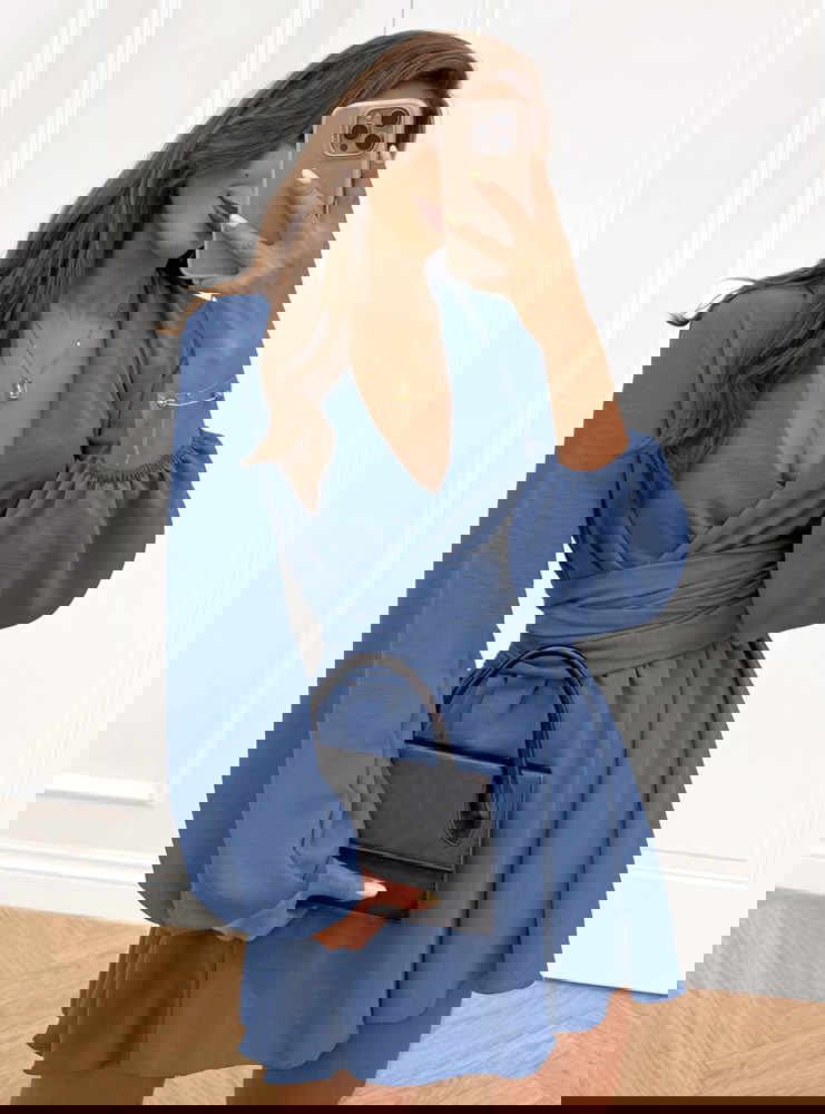 Kombinezon jak sukienka z bufiastymi rękawami Dilettia - jeans to idealna propozycja dla kobiet, które lubią modę z klasą i subtelnym twistem. Ten fason zachwyca elegancją, a jednocześnie ma w sobie lekkość i dziewczęcy urok. Głęboki dekolt z kopertowym przodem pięknie podkreśla sylwetkę i dodaje wdzięku każdemu ruchowi. Bufiaste rękawy nadają całości niepowtarzalnego charakteru, tworząc wyjątkowo harmonijny balans pomiędzy prostotą a wyrafinowaniem. Taliowanie i szeroki pas podkreślają kobiece kształty, sprawiając, że sylwetka nabiera proporcji. Delikatny kolor jeansowy dodaje świeżości i sprawia, że całość wygląda niezwykle stylowo. To model, który przyciąga spojrzenia, ale nie przytłacza. Świetnie prezentuje się zarówno w ruchu, jak i w spoczynku, dzięki miękko układającemu się materiałowi. Idealny wybór dla kobiet, które cenią sobie styl, swobodę i elegancki minimalizm.