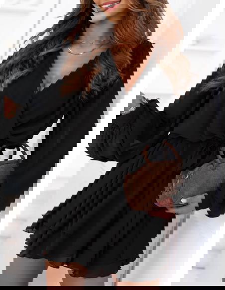 Czarna szyfonowa sukienka mini z przekładanym dekoltem Destinie