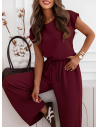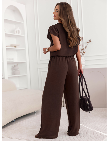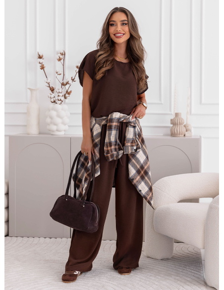 Czekoladowy komplet bluzka z krótkim rękawem i spodnie Adaline