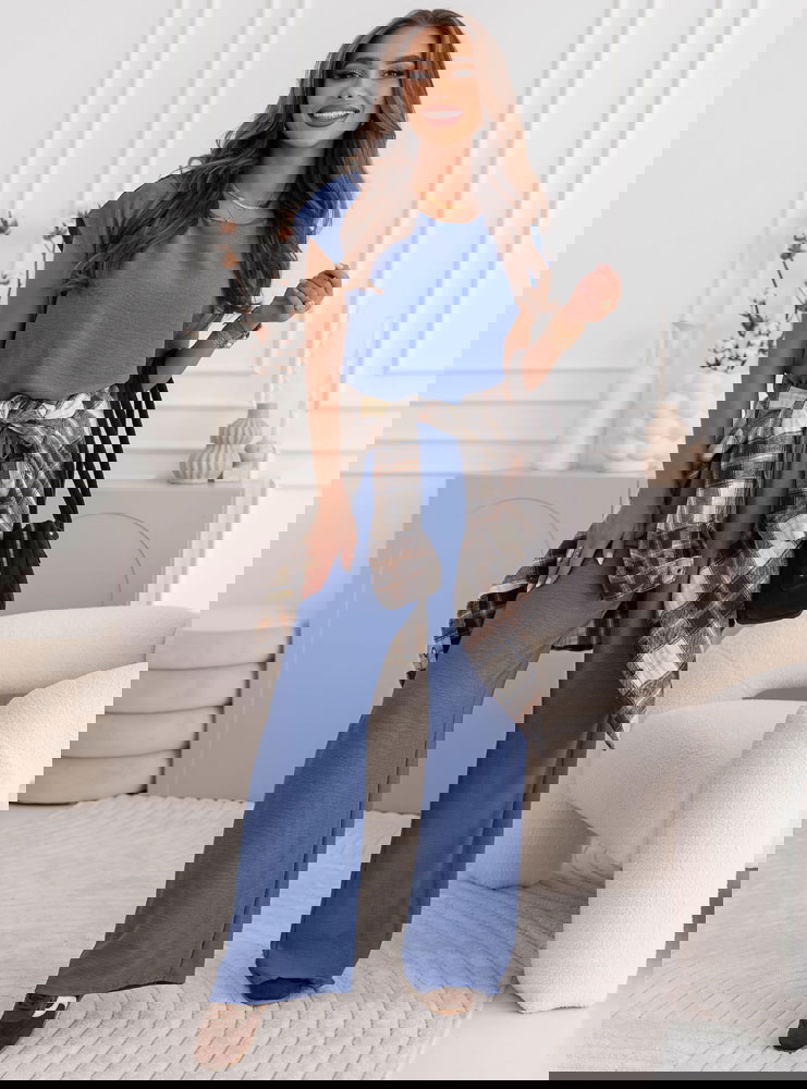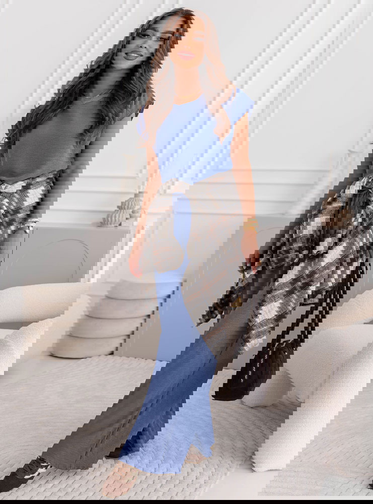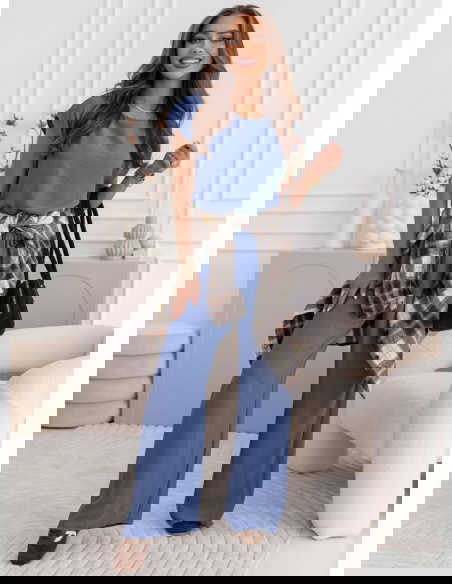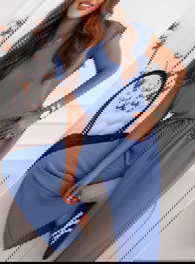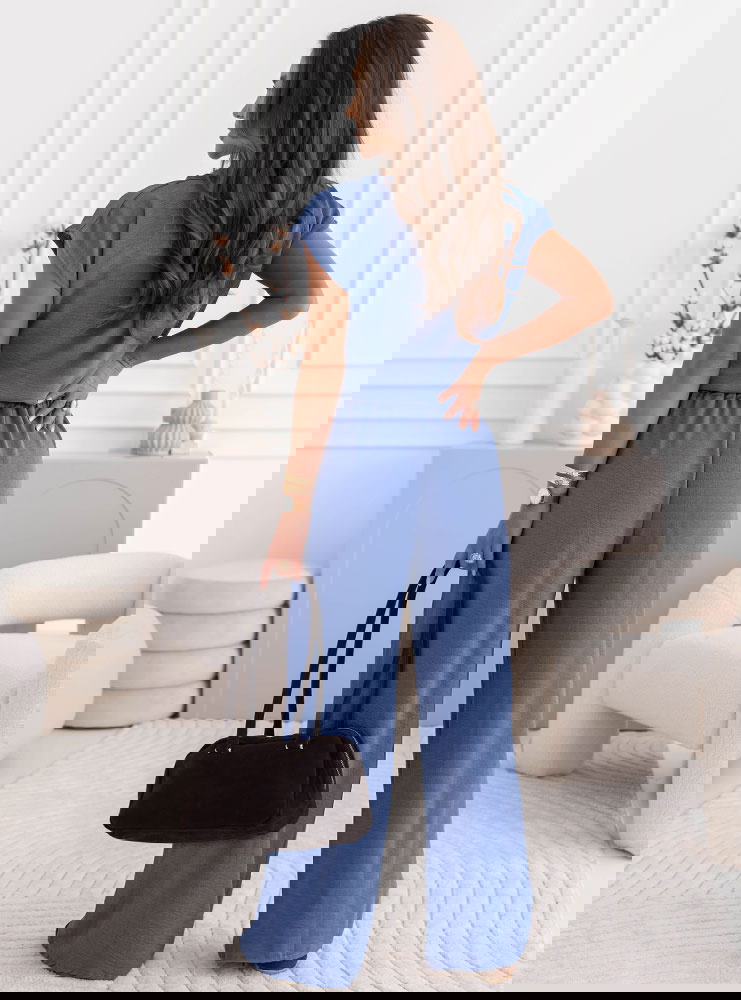 Komplet bluzka z krótkim rękawem i spodnie Adaline - jeans to połączenie wygody, stylu i nowoczesnego luzu. Jego niebanalny odcień niebieskiego wprowadza świeżość do jesiennych stylizacji. To zestaw, który pozwala czuć się swobodnie, a jednocześnie wyglądać modnie i kobieco. Bluzka o prostym kroju pięknie komponuje się ze spodniami z szerokimi nogawkami, tworząc spójną i stylową całość. To model, który z łatwością dopasujesz do różnych okazji – od codziennych spacerów po spotkania w mieście. Kolor jeansowy nadaje mu lekkości, a jednocześnie świetnie wpisuje się w klimat sezonu. Dzięki temu kompletowi z łatwością stworzysz stylizację, która będzie wyglądać naturalnie i niewymuszenie. To idealny wybór dla kobiet, które cenią prostotę połączoną z nutą elegancji. Całość wygląda lekko, ale jednocześnie bardzo nowocześnie i kobieco. To zestaw, który z pewnością przyciągnie uwagę swoim subtelnym urokiem i ponadczasowym charakterem.