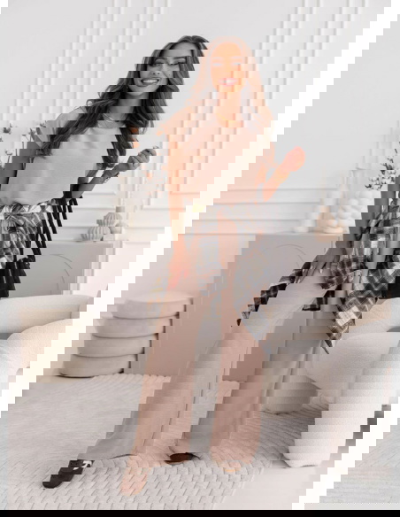 Beżowy komplet bluzka z krótkim rękawem i spodnie Adaline
