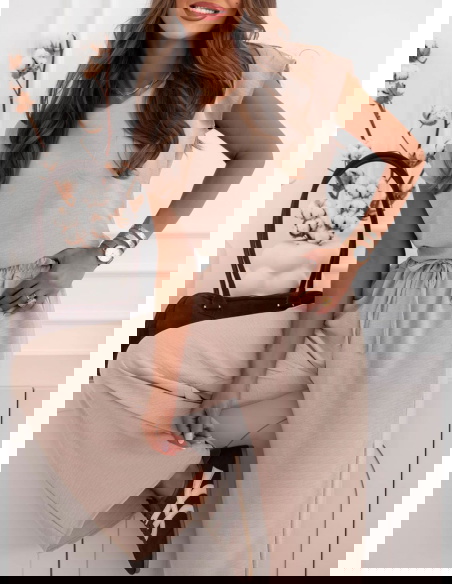 Beżowy komplet bluzka z krótkim rękawem i spodnie Adaline to propozycja, która zachwyca swoją prostotą i eleganckim luzem. Zestaw łączy w sobie klasykę z nowoczesnym podejściem do mody, tworząc idealną bazę do wielu stylizacji. Jego uniwersalny kolor beżu podkreśla delikatność i naturalność, dzięki czemu sprawdzi się o każdej porze roku. Luźny krój bluzki z krótkim rękawem dodaje lekkości, a wiązanie w pasie pięknie podkreśla talię. Szerokie nogawki spodni nadają całości swobodnego, modnego charakteru. To komplet, który w subtelny sposób podkreśla kobiecą sylwetkę i sprawia, że każda stylizacja nabiera klasy. Jego prostota jest największym atutem – wystarczy kilka dodatków, by stworzyć zupełnie nowy look. To doskonała propozycja dla kobiet, które lubią czuć się wygodnie, ale jednocześnie stylowo. Komplet ten idealnie wpisuje się w jesienne trendy, oferując przytulny i nowoczesny wygląd.<