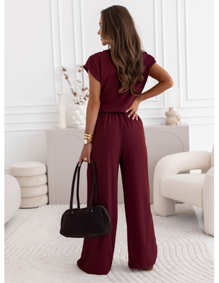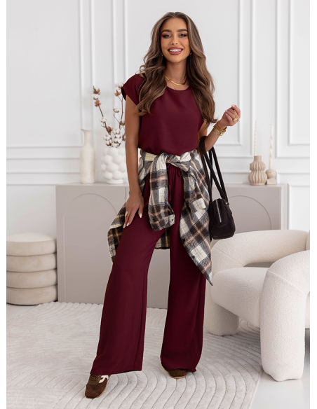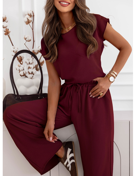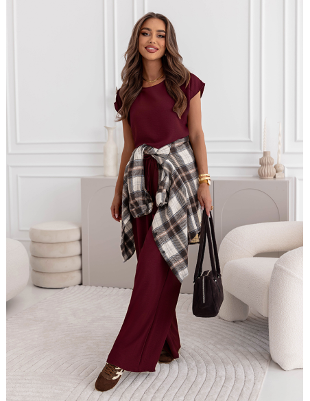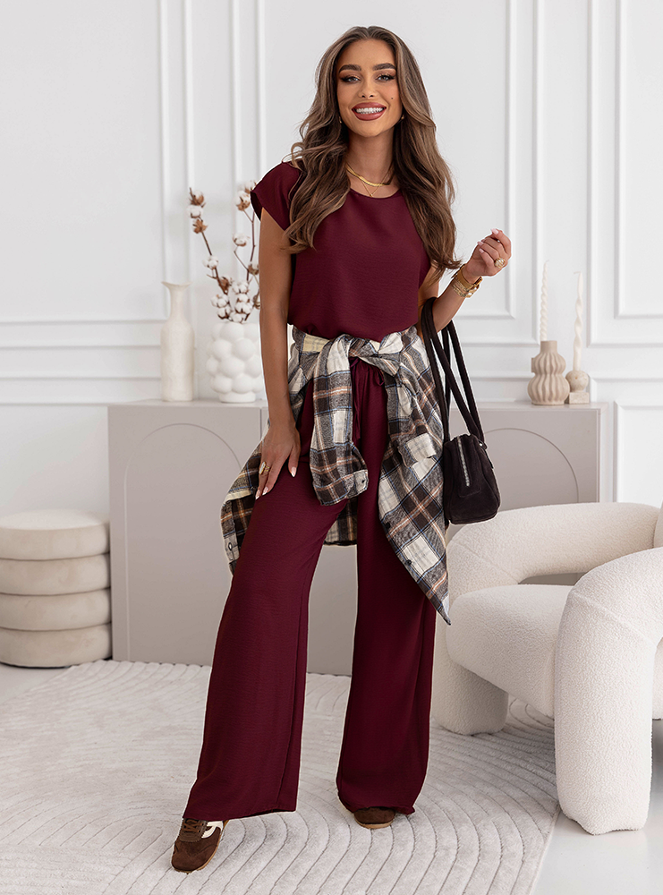 Bordowy komplet bluzka z krótkim rękawem i spodnie Adaline