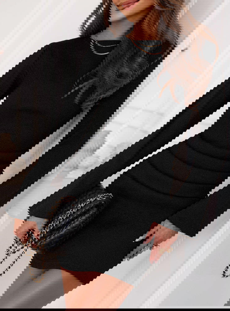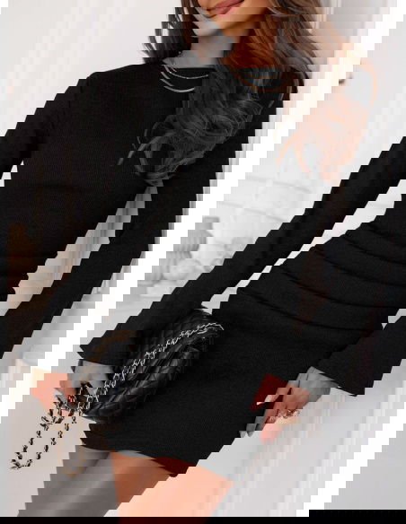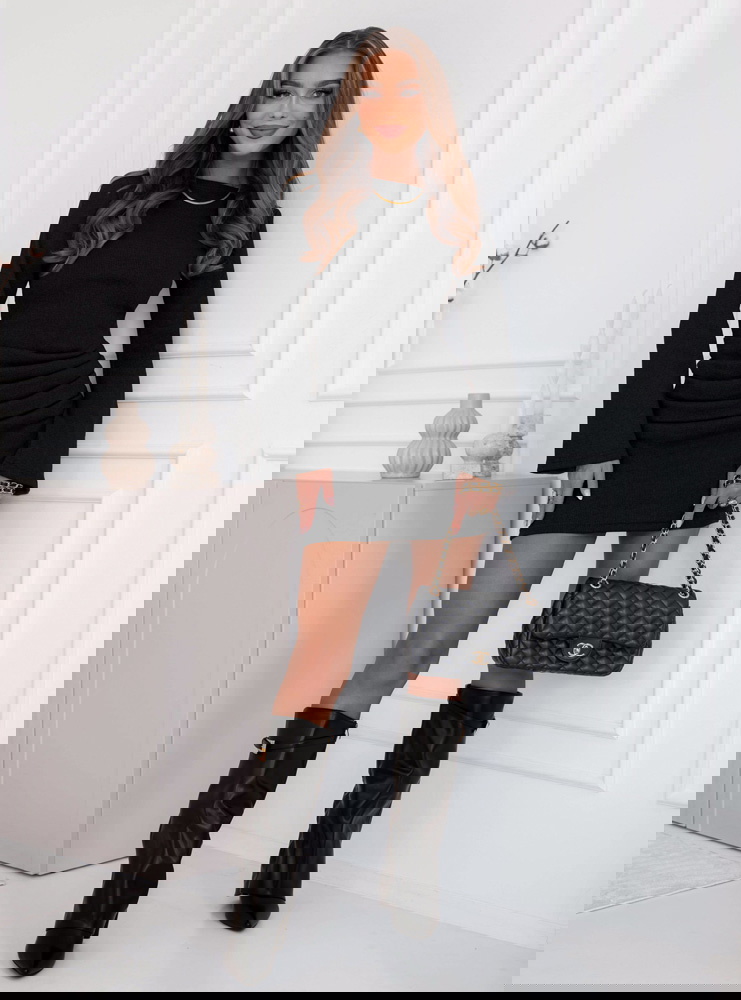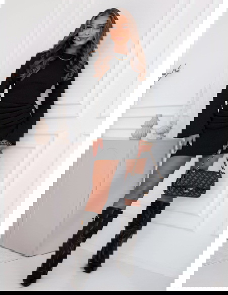 Czarna prążkowana sukienka mini Jodele to nieodłączny element kobiecej garderoby. Łączy w sobie elegancję, minimalizm i ponadczasowy styl.