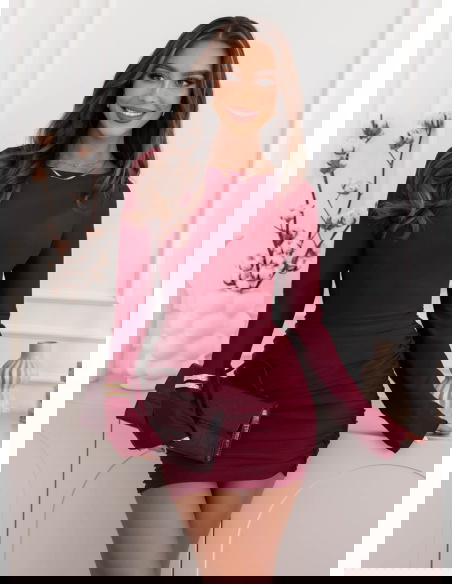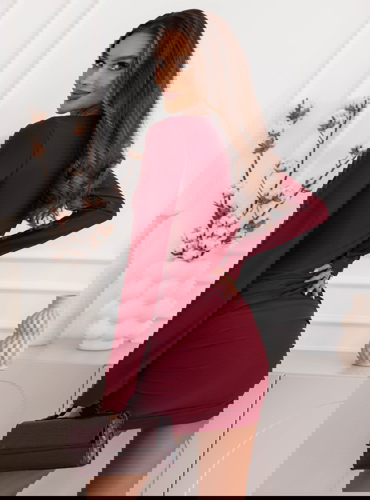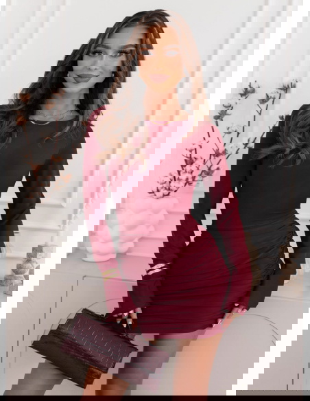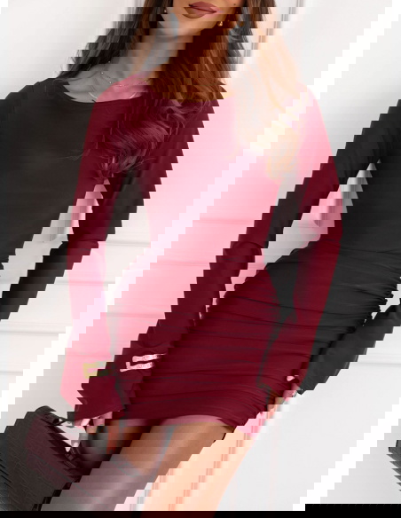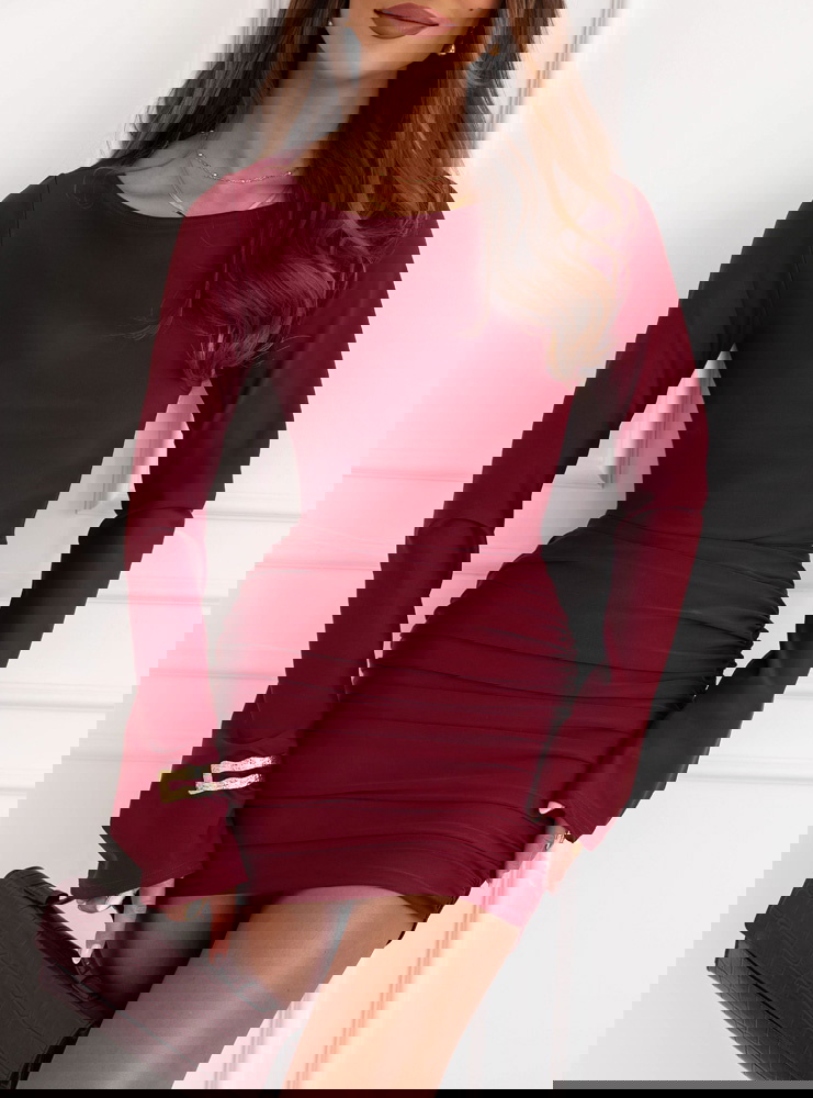 Bordowa dopasowana sukienka mini z marszczeniami po bokach Effney to idealny wybór na wieczorne wyjścia, spotkania czy uroczystości. Doskonale prezentuje się w towarzystwie wysokich kozaków lub klasycznych szpilek.