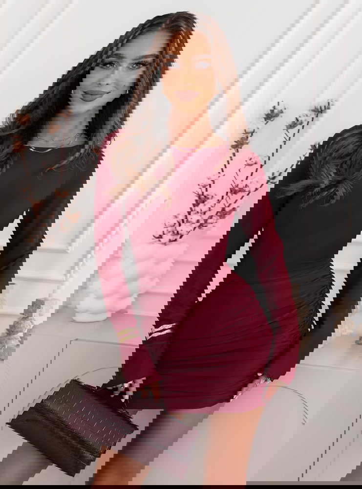 Bordowa dopasowana sukienka mini z marszczeniami po bokach Effney to propozycja, która zachwyca swoją kobiecością i eleganckim charakterem. Jej intensywny kolor podkreśla urodę i przyciąga wzrok, a dopasowany fason pięknie eksponuje sylwetkę. To model, który łączy subtelną zmysłowość z nowoczesnym stylem. Długie rękawy dodają całości klasy i sprawiają, że sukienka idealnie wpisuje się w jesienny klimat. Marszczenia po bokach to nie tylko ozdobny detal – optycznie modelują sylwetkę i podkreślają talię. Sukienka wygląda niezwykle efektownie, a jednocześnie pozostaje uniwersalna i ponadczasowa. To doskonały wybór dla kobiet, które cenią minimalizm z nutą wyrafinowania. Jej prostota pozwala na wiele interpretacji – wystarczy dobrać odpowiednie dodatki, by dopasować ją do okazji. Bordowy odcień wnosi ciepło i elegancję, a jej krój gwarantuje pewność siebie w każdej sytuacji. To model, który wyróżnia się z tłumu, nie tracąc przy tym klasy.