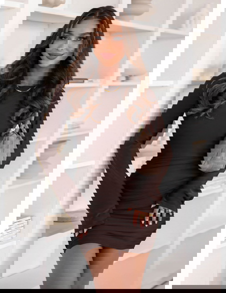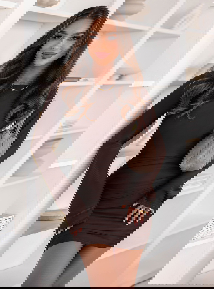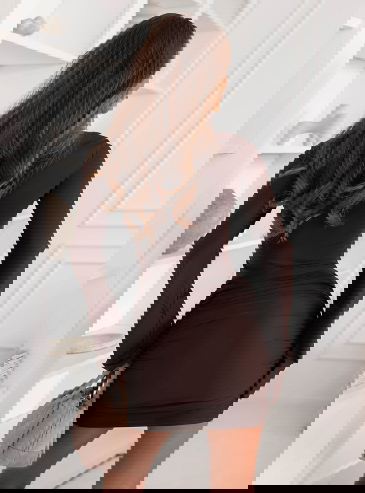 Czekoladowa dopasowana sukienka mini z marszczeniami po bokach Effney to kwintesencja kobiecości w eleganckim wydaniu. Jej głęboki, ciepły odcień brązu idealnie wpisuje się w jesienną aurę, dodając stylizacji klasy i wyrafinowania. Dopasowany krój pięknie podkreśla figurę, a delikatne marszczenia po bokach subtelnie modelują sylwetkę, tworząc efekt wysmuklenia. Długie rękawy nadają całości harmonii, a długość mini dodaje zmysłowości i lekkości. To sukienka, która łączy elegancję z nowoczesnym akcentem – idealna dla kobiet, które lubią czuć się wyjątkowo. Czekoladowy kolor dodaje głębi i świetnie komponuje się z beżowymi, karmelowymi czy złotymi dodatkami. To model, który sprawdzi się zarówno w codziennych stylizacjach, jak i na wyjątkowe okazje. Subtelna, a jednocześnie wyrazista – taka właśnie jest ta sukienka. Dzięki niej każda kobieta może poczuć się pewnie, stylowo i kobieco. Wystarczy dodać wysokie kozaki lub botki, by stworzyć perfekcyjny, jesienny look.