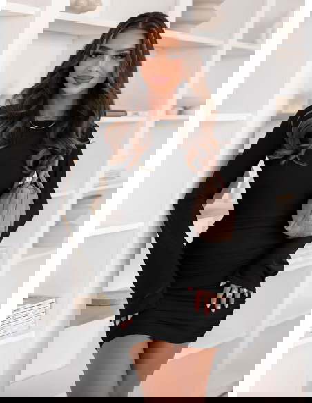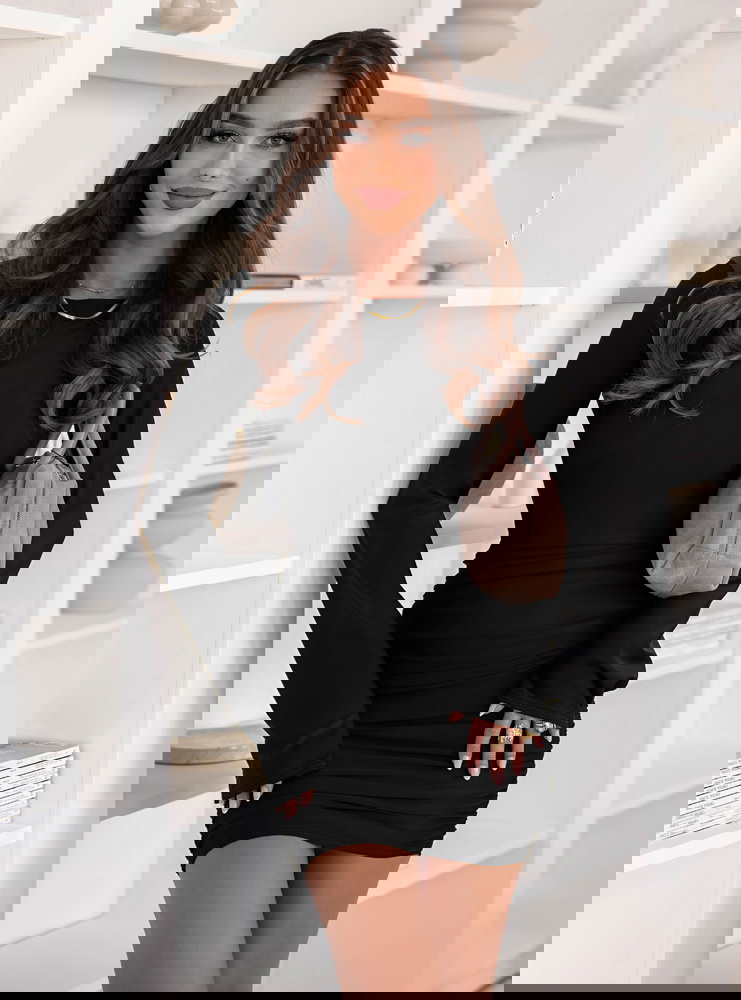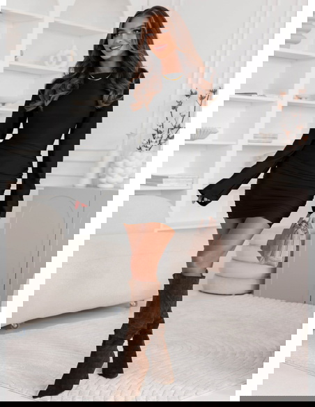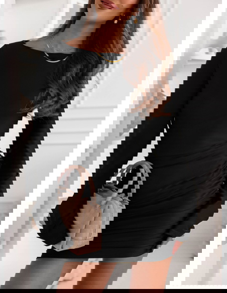 Czarna dopasowana sukienka mini z marszczeniami po bokach Effney to klasyk, który nigdy nie zawodzi. Jej prosty, a jednocześnie niezwykle kobiecy fason podkreśla sylwetkę i dodaje pewności siebie. To model, który łączy minimalizm z nutą elegancji, tworząc idealną propozycję na jesienne stylizacje. Marszczenia po bokach subtelnie modelują figurę, dodając jej kształtów i lekkości. Długość mini sprawia, że całość prezentuje się zmysłowo, ale wciąż z klasą. Długie rękawy równoważą proporcje, wprowadzając delikatny, jesienny akcent. Czarny kolor nadaje sukience ponadczasowego charakteru i sprawia, że jest uniwersalna – idealna na wiele okazji. To model, który z łatwością dopasujesz zarówno do eleganckich dodatków, jak i do bardziej casualowych stylizacji. Wystarczy kilka detali, by za każdym razem wyglądała zupełnie inaczej. To sukienka, która doskonale łączy wygodę i styl, stanowiąc bazę wielu modnych looków.