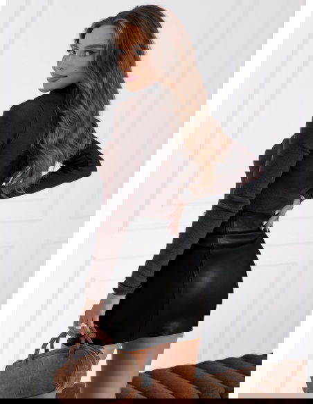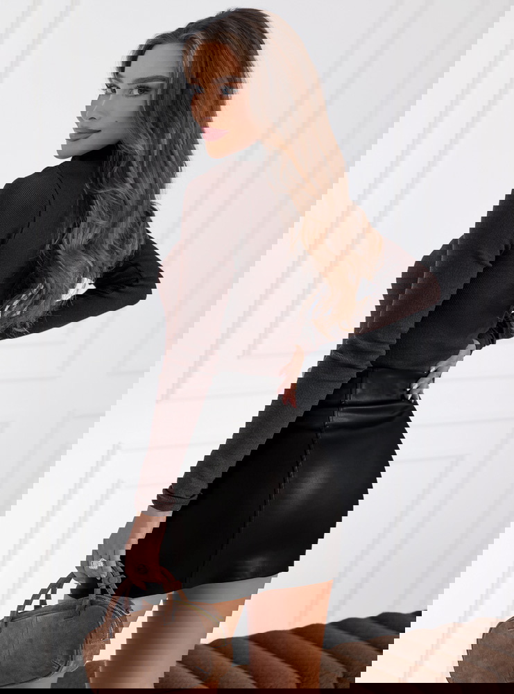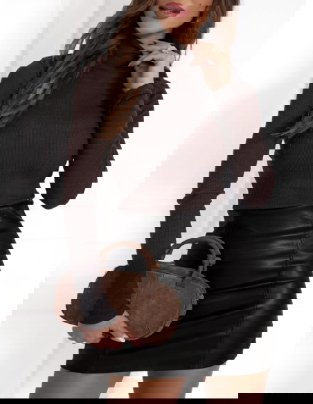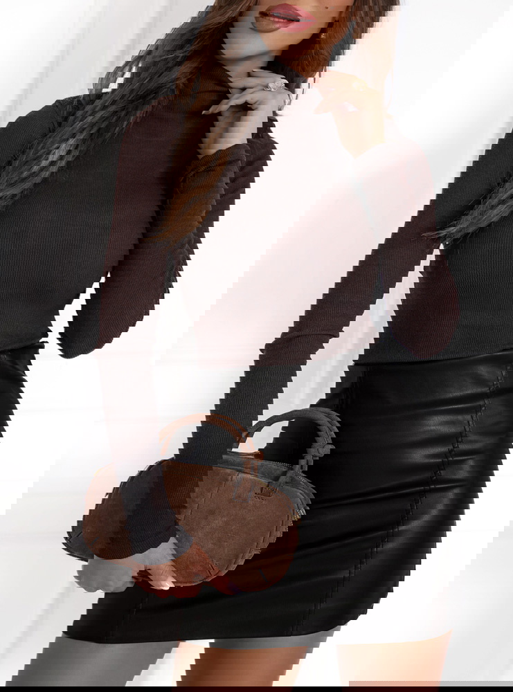 Czekoladowa prążkowana bluzka z półgolfem Dorindaa