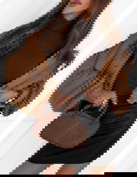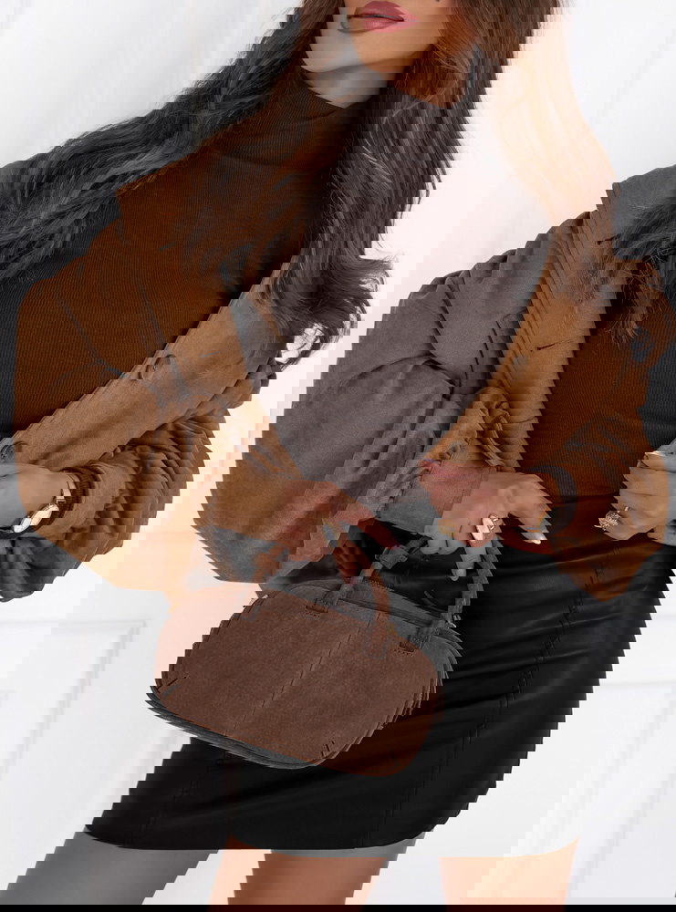 Czekoladowa prążkowana bluzka z półgolfem Dorindaa sprawdzi się doskonale w wielu sytuacjach – od pracy, przez spotkania, po wieczorne wyjścia. Można ją połączyć z ołówkową spódnicą dla eleganckiego efektu lub ze spodniami z wysokim stanem dla casualowego stylu.