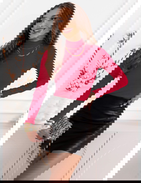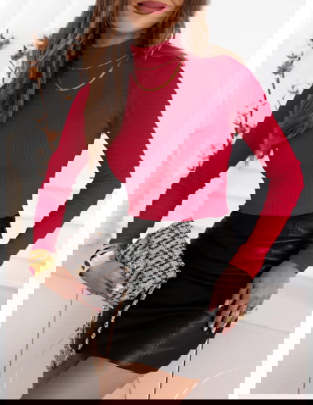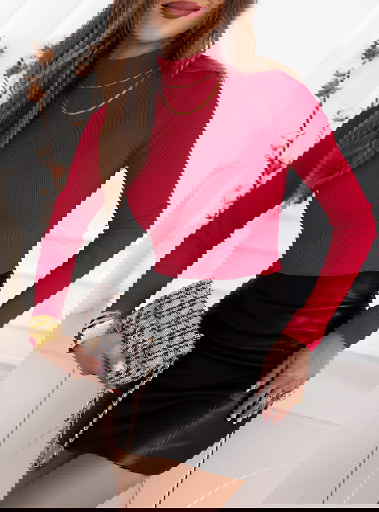 Malinowa prążkowana bluzka z półgolfem Dorindaa