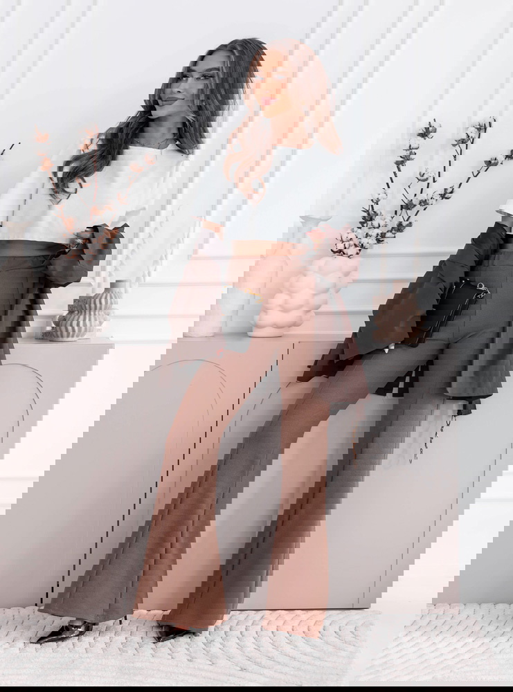 Czekoladowe spodnie z rozszerzanymi nogawkami Annri to idealne połączenie elegancji i wygody w jesiennym wydaniu. Ich dopasowany krój w górnej części i delikatnie rozszerzane nogawki pięknie modelują sylwetkę, optycznie ją wydłużając. Ciepły, czekoladowy odcień dodaje stylizacji głębi i klasy, doskonale wpisując się w sezonową paletę barw. To fason, który łączy modowy charakter z ponadczasowym stylem. Spodnie prezentują się wyjątkowo kobieco, a jednocześnie zachowują casualową lekkość. Idealnie komponują się z krótkimi bluzkami, koszulami czy swetrami o luźniejszym kroju. Czekoladowy kolor pięknie współgra z beżem, czernią czy karmelowymi akcentami, tworząc spójną, jesienną całość. To model, który z łatwością dopasujesz zarówno do eleganckiego, jak i codziennego looku. Dzięki nim każda stylizacja nabierze modnego, wyważonego charakteru.