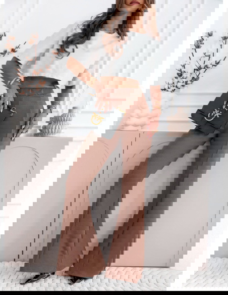 Czekoladowe spodnie z rozszerzanymi nogawkami Annri