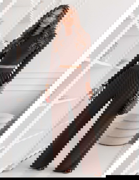 Czekoladowy komplet bluzka i szerokie spodnie Michaelinaa
