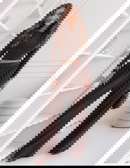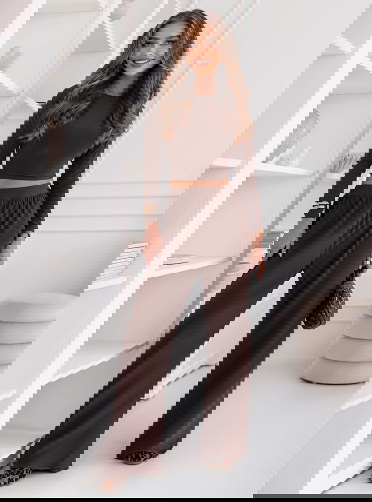Czekoladowy komplet bluzka i szerokie...