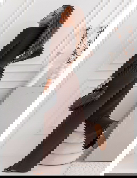 Czekoladowy komplet bluzka i szerokie spodnie Michaelinaa to połączenie elegancji, wygody i ponadczasowego stylu. Jego głęboki odcień brązu doskonale wpisuje się w jesienny klimat, tworząc ciepłą, przytulną aurę. Dopasowana bluzka z długim rękawem subtelnie podkreśla sylwetkę, a szerokie spodnie wprowadzają lekkość i nowoczesny charakter. To zestaw, który zachwyca prostotą, a jednocześnie przyciąga uwagę swoim wyrafinowanym wyglądem. Czekoladowy kolor nadaje stylizacji elegancji, jednocześnie pozostając neutralny i uniwersalny. Ten komplet to idealny balans między swobodą a kobiecością – sprawdzi się zarówno w codziennym, jak i bardziej dopracowanym wydaniu. Jego minimalistyczna forma sprawia, że możesz go dowolnie stylizować, tworząc wiele modnych zestawień. Wystarczy zmienić dodatki, by nadać mu zupełnie nowy charakter. To propozycja dla kobiet, które cenią stylowy wygląd bez kompromisów.
