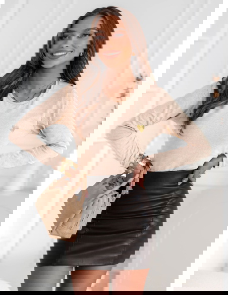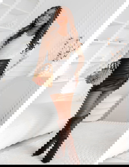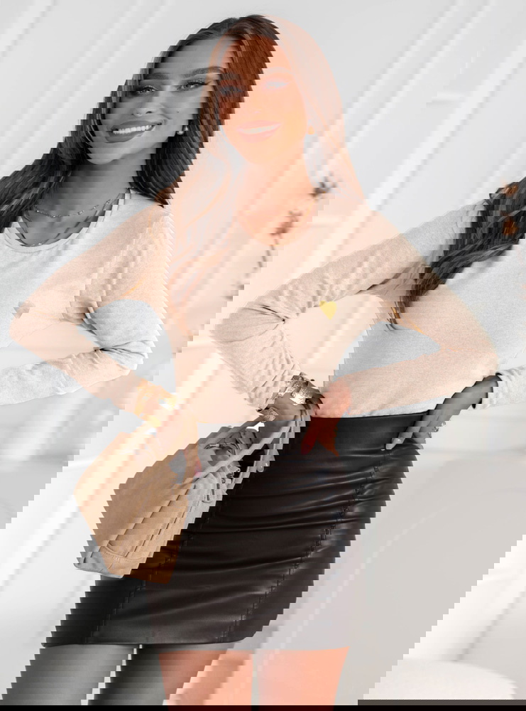 Jasnobeżowa koszulka na długi rękaw z ozdobnym nadrukiem Jennabel to propozycja, która zachwyca subtelnością i elegancją w codziennym wydaniu. Jej delikatny, kremowo-beżowy odcień wprowadza do stylizacji ciepło i świeżość, idealnie wpisując się w jesienny klimat. Minimalistyczny nadruk w formie złotego serduszka nadaje całości dziewczęcego uroku i lekko błyszczącego akcentu. To model, który świetnie podkreśla naturalne piękno i dodaje stylu bez przesadnych ozdób. Długi rękaw i prosty krój sprawiają, że koszulka doskonale dopasowuje się do sylwetki, jednocześnie pozostając wygodna i swobodna. To klasyka w nowoczesnym wydaniu – idealna dla kobiet, które lubią wyglądać z klasą każdego dnia. Subtelna, ale efektowna – taka właśnie jest ta koszulka.