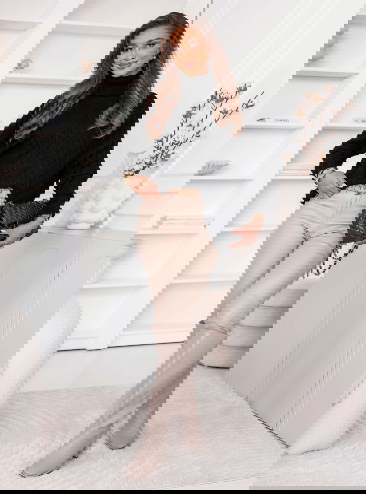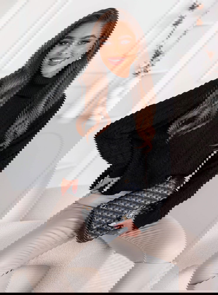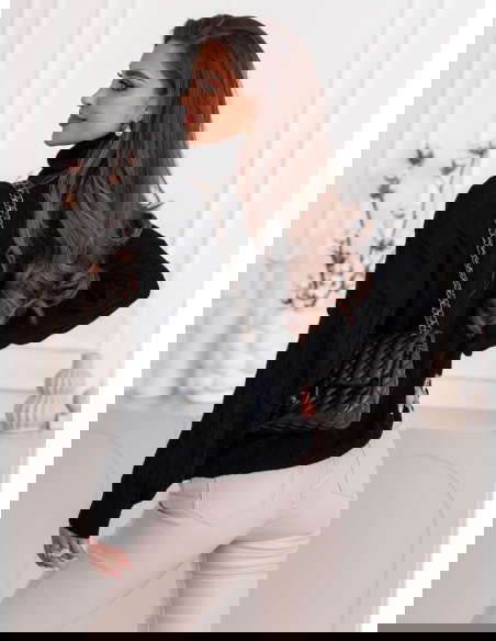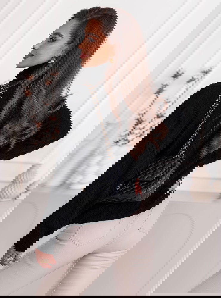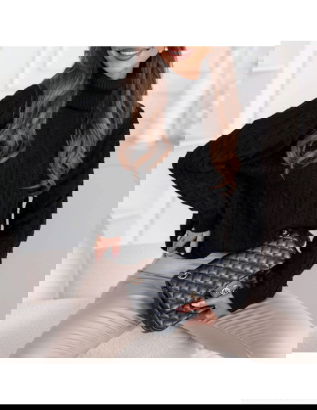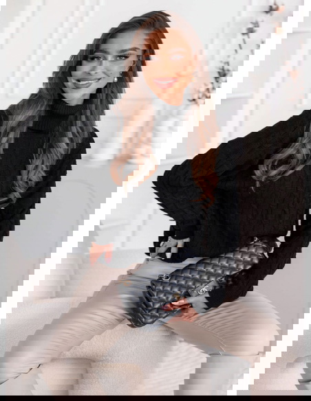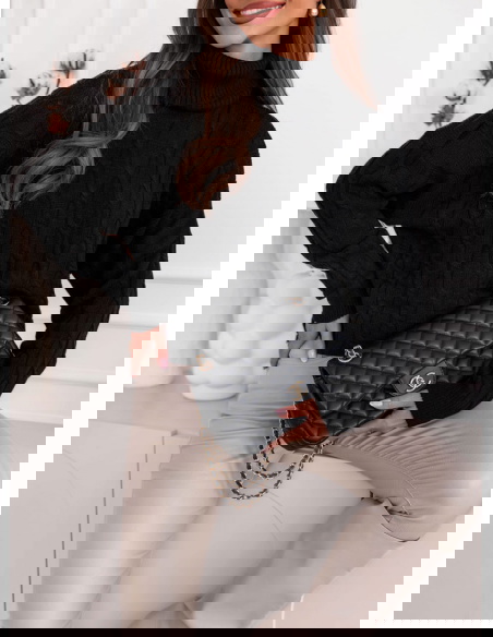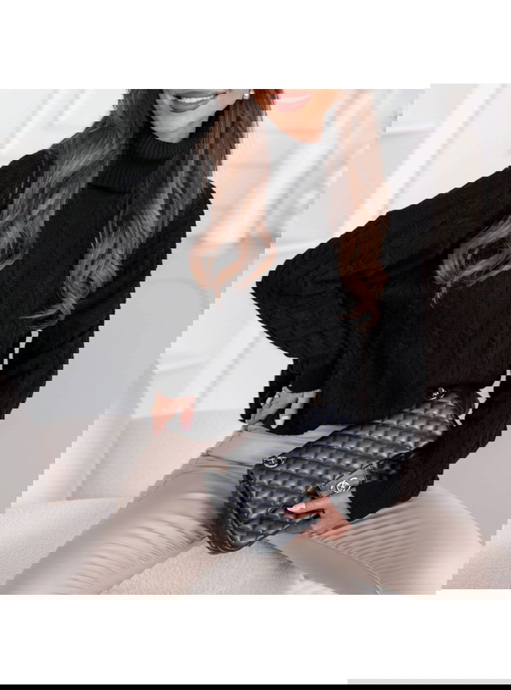 Czarny sweter z golfem i ozdobnym splotem Jaymie sprawdzi się w każdej sytuacji. To idealny wybór na chłodniejsze dni – do pracy, na spacer, spotkanie z przyjaciółkami czy jesienny wyjazd.
