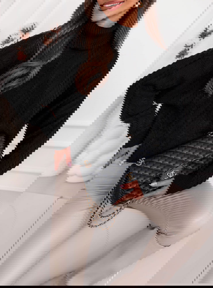 Czarny sweter z golfem i ozdobnym splotem Jaymie