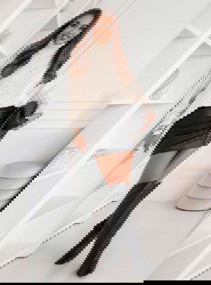 Beżowy sweter z golfem i ozdobnym splotem Jaymie to kwintesencja jesiennego stylu — elegancki, kobiecy i przytulny zarazem. Jego klasyczny kolor w ciepłym odcieniu beżu sprawia, że pasuje do niemal każdej stylizacji. Ozdobny splot nadaje mu wyjątkowego charakteru i delikatnej struktury, która przyciąga wzrok. Golf otula szyję i dodaje całości szyku, a jednocześnie wprowadza nutę casualowego luzu. To model, który można stylizować na wiele sposobów — zarówno w zestawieniu z elegancką spódnicą, jak i jeansami czy spodniami z wysokim stanem. Luźniejszy fason zapewnia wygodę i swobodę ruchów, a jego uniwersalność sprawia, że nigdy nie wychodzi z mody. To idealna propozycja na chłodne dni, gdy chcesz wyglądać stylowo, a jednocześnie czuć się komfortowo. Beżowy sweter z golfem to klasyk, który zawsze prezentuje się gustownie i ponadczasowo.