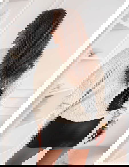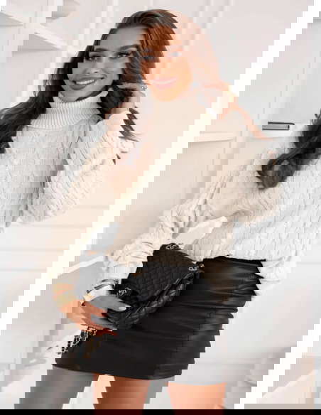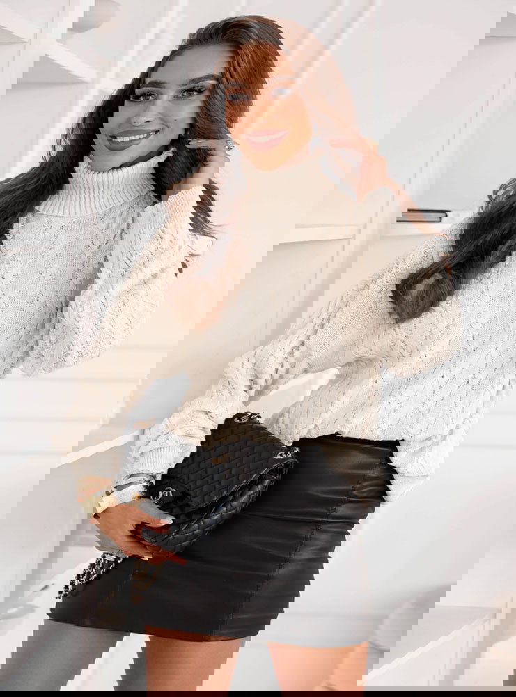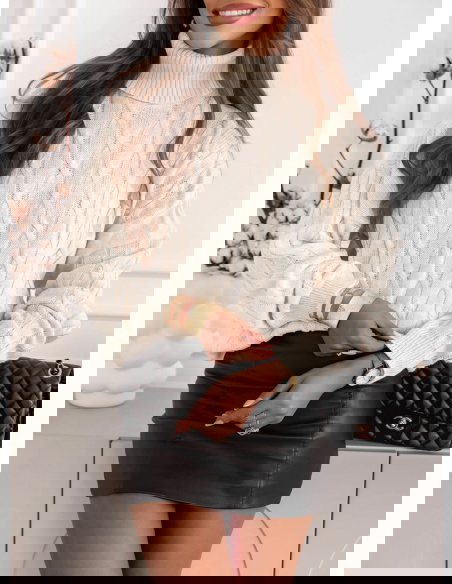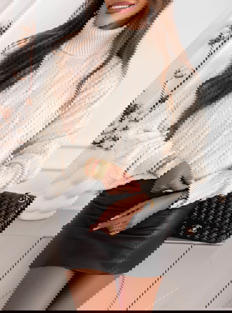 Beżowy sweter z golfem i ozdobnym splotem Jaymie