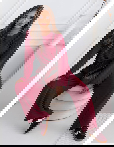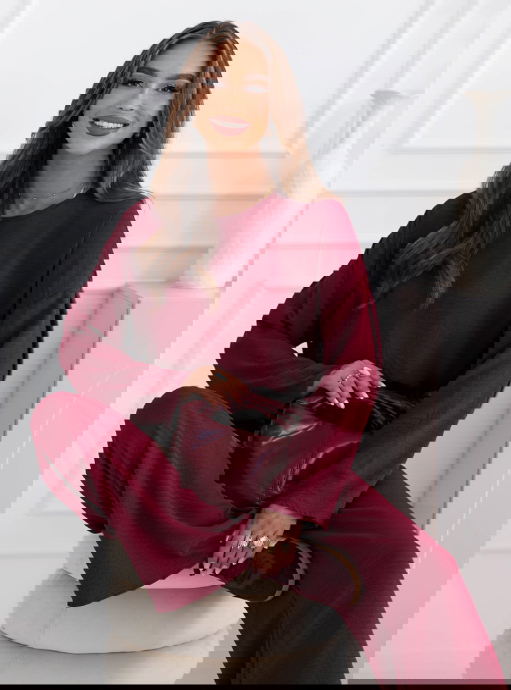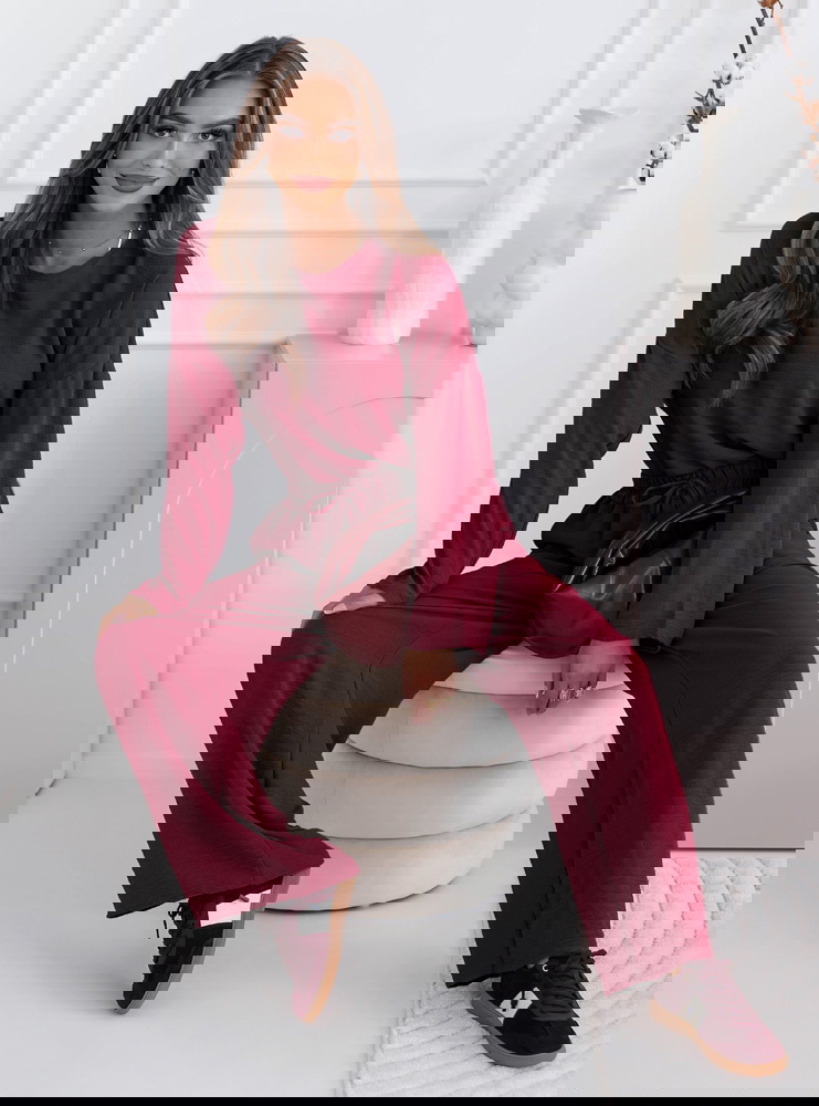 Bordowy komplet bluzka i spodnie Shalina to stylowa propozycja dla kobiet, które cenią elegancję połączoną z wygodą. Głęboki, szlachetny odcień bordo dodaje całości klasy i idealnie wpisuje się w jesienny klimat. To zestaw, który zachwyca prostotą, a jednocześnie prezentuje się niezwykle szykownie. Luźniejszy fason bluzki i spodnie o szerokich nogawkach tworzą harmonijną całość, zapewniając swobodę ruchów i wyjątkowy komfort noszenia. Komplet ten świetnie sprawdzi się zarówno w codziennych stylizacjach, jak i bardziej dopracowanych zestawieniach. Bordowy kolor pięknie podkreśla urodę, dodając ciepła i elegancji. To model, który sprawia, że nawet najprostszy look zyskuje charakter. Doskonały wybór dla kobiet, które lubią wyglądać dobrze bez wysiłku. Ten komplet to gwarancja stylu i wygody w jednym.