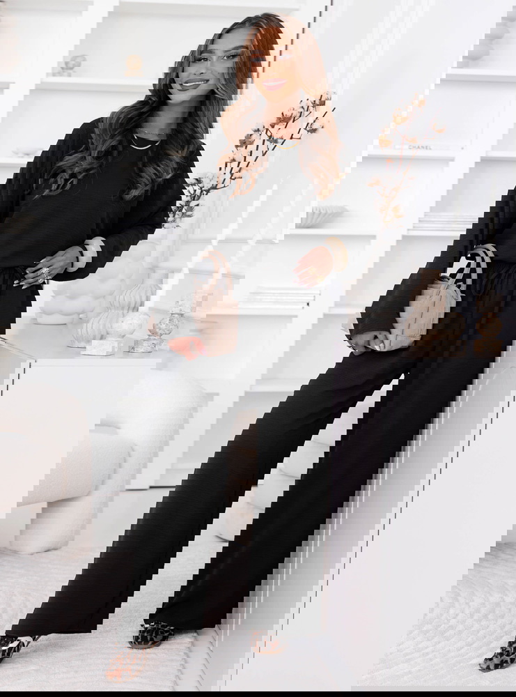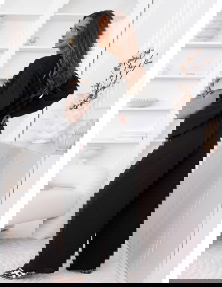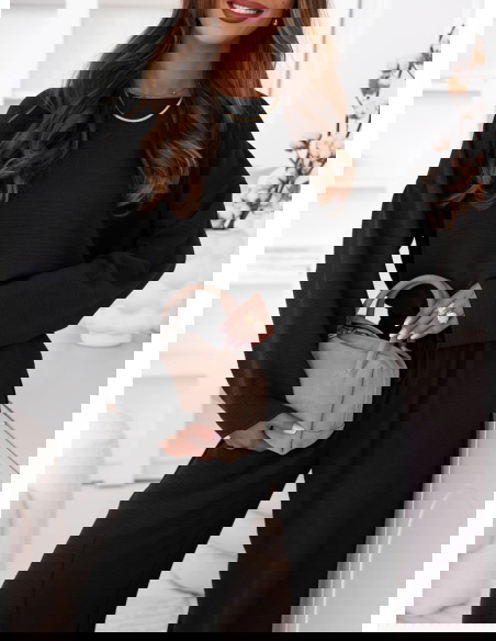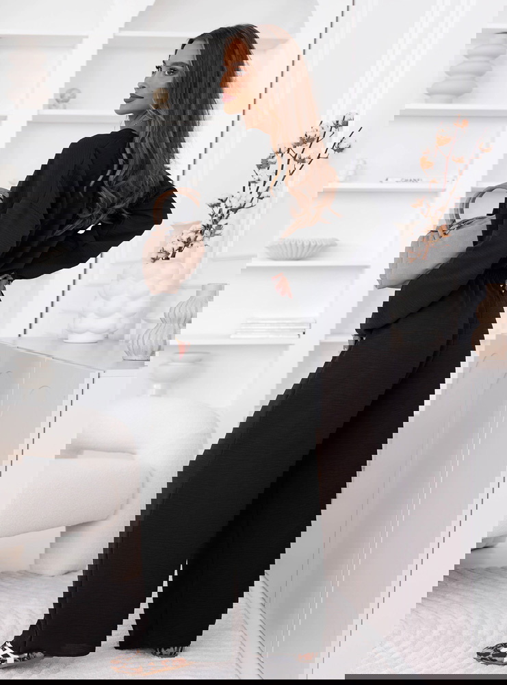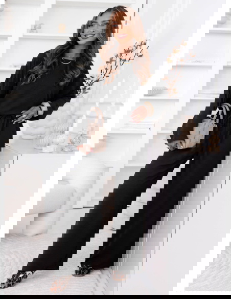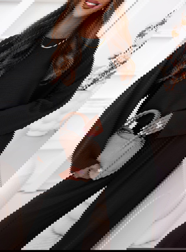 Czarny komplet bluzka i spodnie Shalina to idealna propozycja na co dzień, do pracy, na spotkanie z przyjaciółkami czy nawet na podróż. Sprawdzi się również podczas spokojnych, jesiennych dni w domu, gdy chcesz wyglądać stylowo, ale czuć pełen komfort.