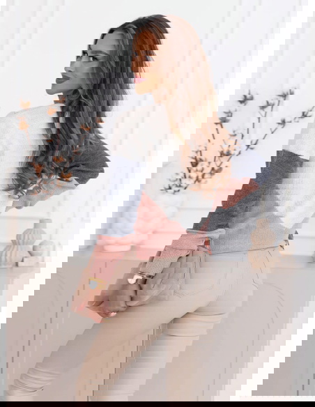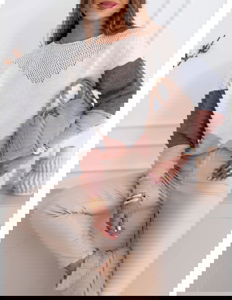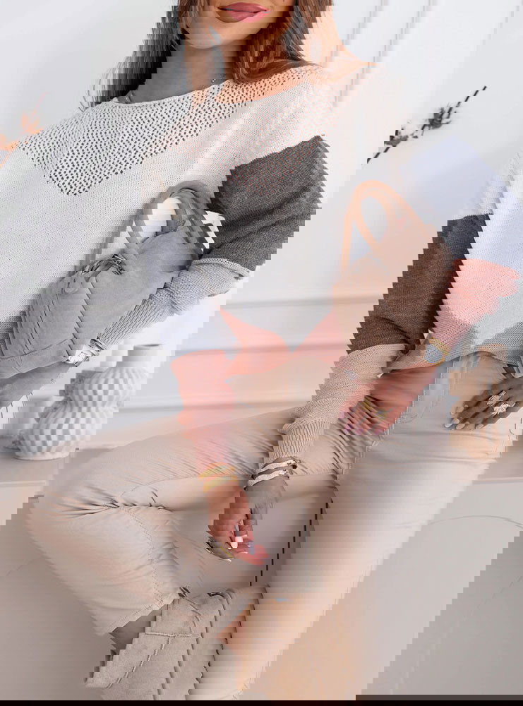 Sweter z ażurowym dekoltem Glayaa - wzór 2 to delikatna i kobieca propozycja, która łączy w sobie subtelność i modny design. Jego pastelowe kolory w odcieniach kremu, różu i szarości tworzą harmonijną całość, idealną na jesienne i zimowe dni. Ażurowy detal przy dekolcie dodaje całości lekkości i wyjątkowego uroku. To sweter, który przyciąga spojrzenia swoim niebanalnym wykończeniem, a jednocześnie pozostaje niezwykle uniwersalny. Luźny krój sprawia, że prezentuje się lekko i stylowo, zapewniając komfort noszenia na co dzień. Subtelne przejścia kolorów nadają mu oryginalnego charakteru i sprawiają, że każda stylizacja nabiera świeżości. Ten model to idealne połączenie klasyki i romantycznej nuty. Pięknie komponuje się zarówno z jeansami, jak i jasnymi spodniami czy spódnicą. To sweter, który wprowadza do garderoby ciepło, miękkość i przytulny klimat. Sprawdzi się zawsze wtedy, gdy chcesz wyglądać kobieco, ale na luzie.