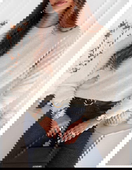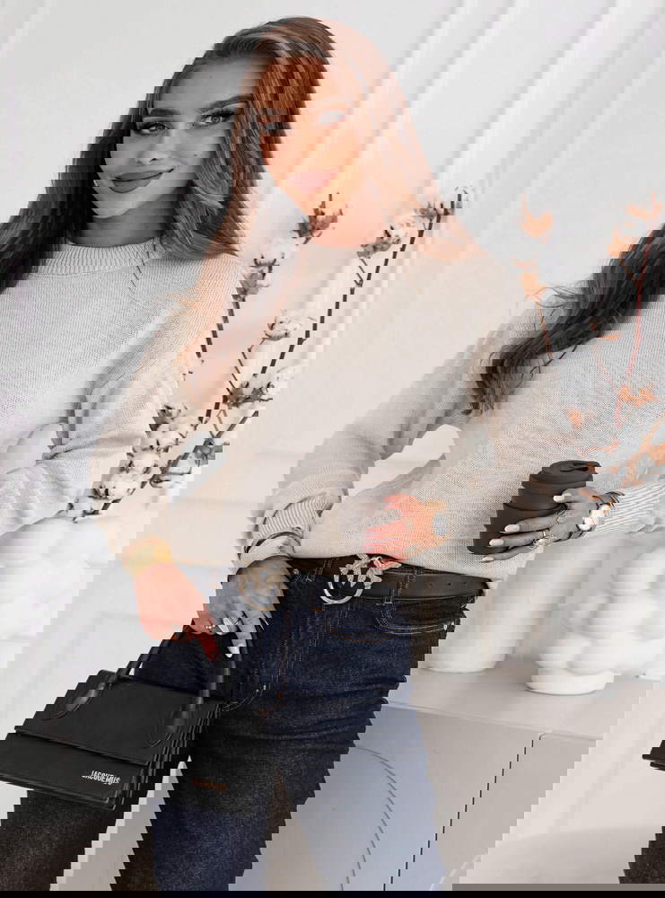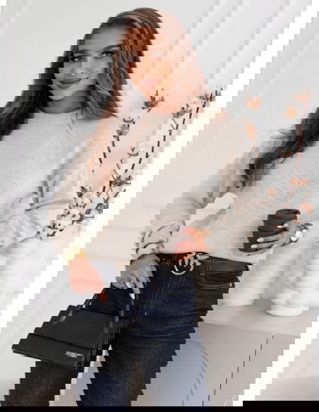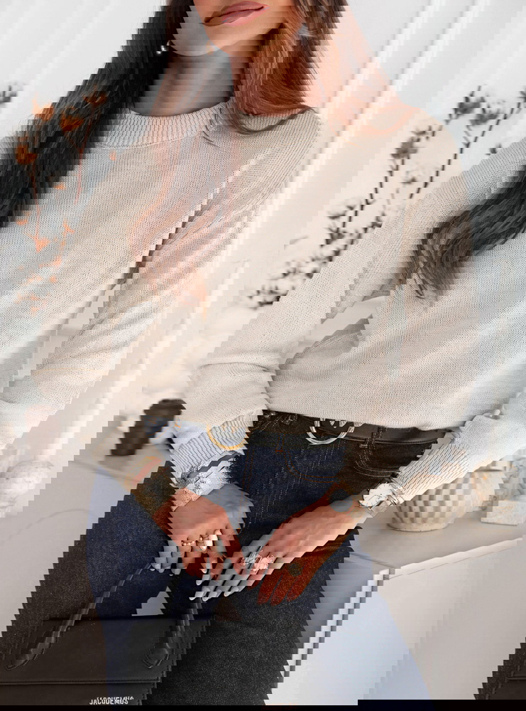 Beżowy sweter oversize Dorcella to idealne połączenie wygody, stylu i kobiecego luzu. Jego prosty, klasyczny fason sprawia, że pasuje do każdej stylizacji, a ciepły odcień beżu dodaje całości elegancji i naturalnego uroku. To model, który zachwyca minimalizmem, ale jednocześnie ma w sobie coś wyjątkowego. Swobodny krój oversize zapewnia komfort i pozwala czuć się swobodnie przez cały dzień. Delikatny półgolf otula szyję, wprowadzając przytulny klimat idealny na jesień i zimę. Sweter doskonale prezentuje się zarówno z jeansami, jak i z dopasowaną spódnicą czy eleganckimi spodniami. Jego neutralny kolor sprawia, że z łatwością dopasujesz go do różnych dodatków i odcieni. To model, który łączy w sobie klasykę i nowoczesność, tworząc ponadczasowy element garderoby. Świetnie wygląda zarówno w codziennych, jak i bardziej dopracowanych stylizacjach. To sweter, który zawsze dodaje uroku i klasy – niezależnie od okazji.