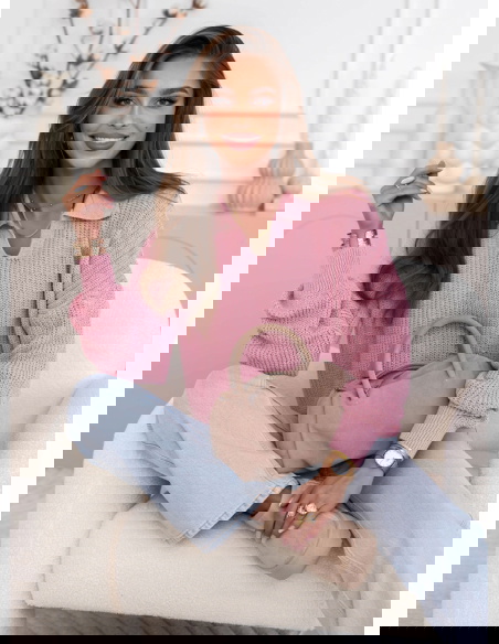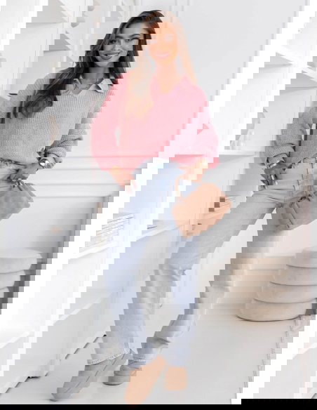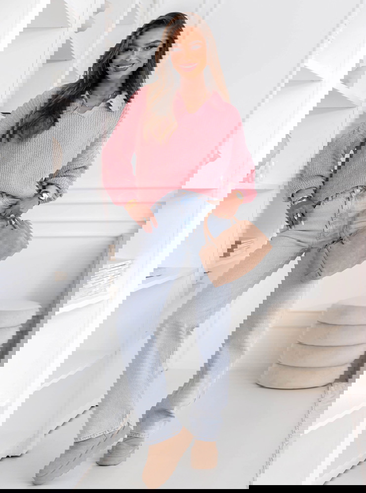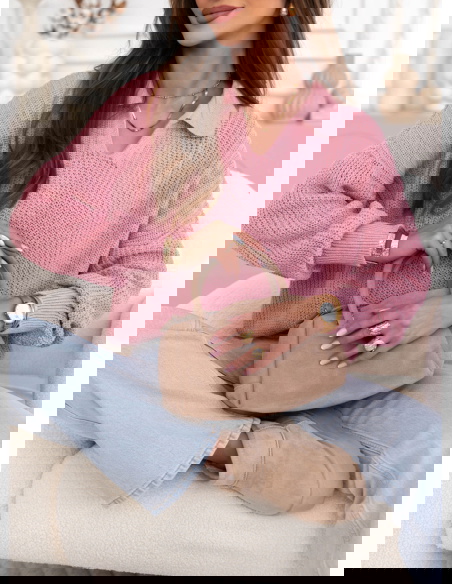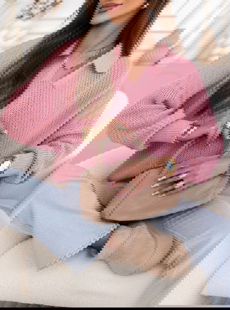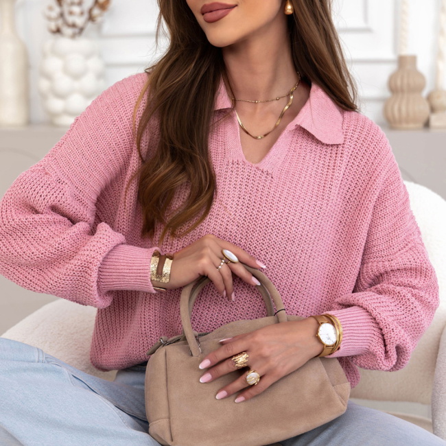 Pudrowy sweter z kołnierzykiem Elvinia to idealne połączenie elegancji i dziewczęcego uroku. Jego delikatny, pastelowy odcień wprowadza lekkość i świeżość do każdej stylizacji, sprawiając, że wygląda niezwykle kobieco. To model, który zachwyca prostotą i subtelnymi detalami – klasyczny kołnierzyk nadaje mu wyjątkowego charakteru i sprawia, że prezentuje się stylowo zarówno w casualowym, jak i bardziej eleganckim wydaniu. Luźny fason i miękka struktura swetra zapewniają wygodę przez cały dzień, a jednocześnie pięknie układają się na sylwetce. To doskonała propozycja na jesień, kiedy liczy się komfort, ale też styl i przytulny wygląd. Pudrowy kolor podkreśla naturalną urodę i dodaje blasku, a uniwersalny design sprawia, że można go łączyć z wieloma elementami garderoby. To sweter, w którym od razu poczujesz się wyjątkowo.