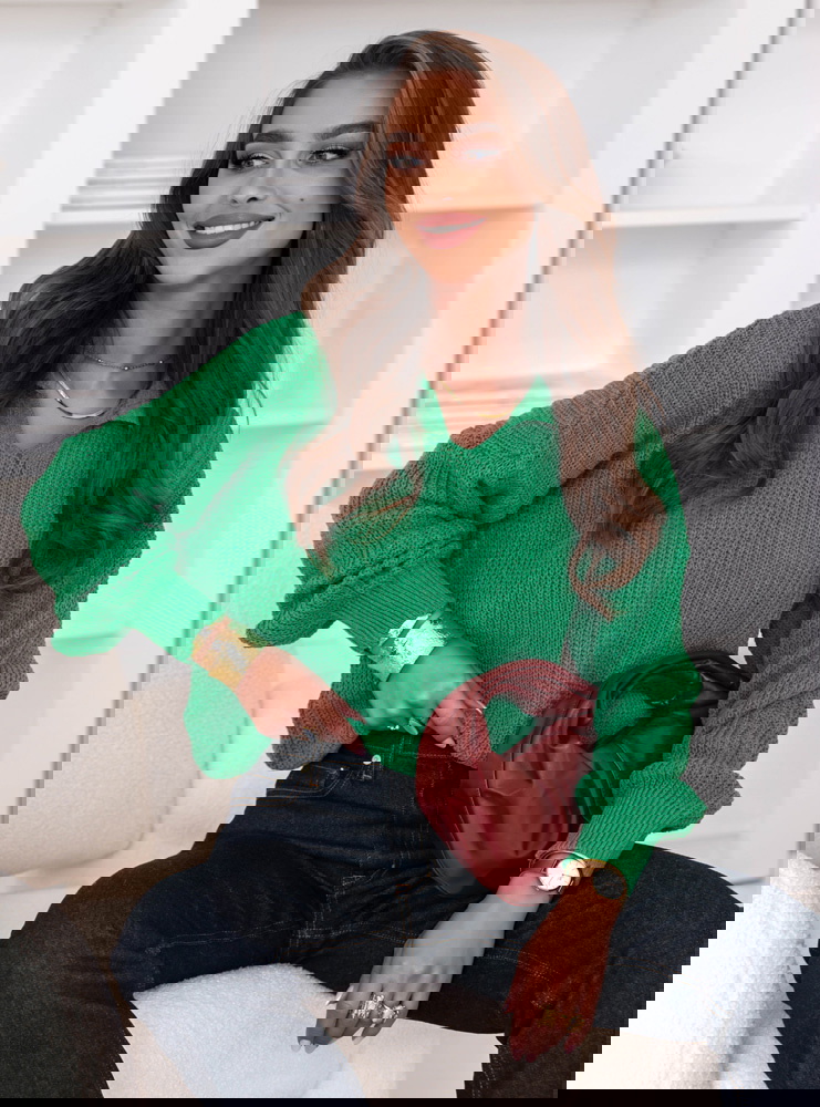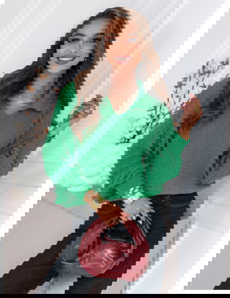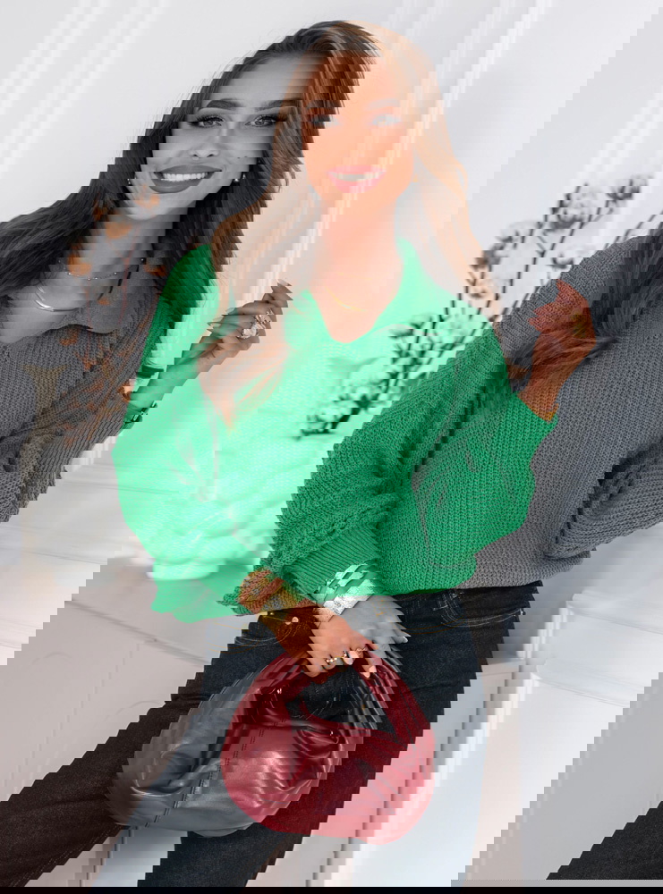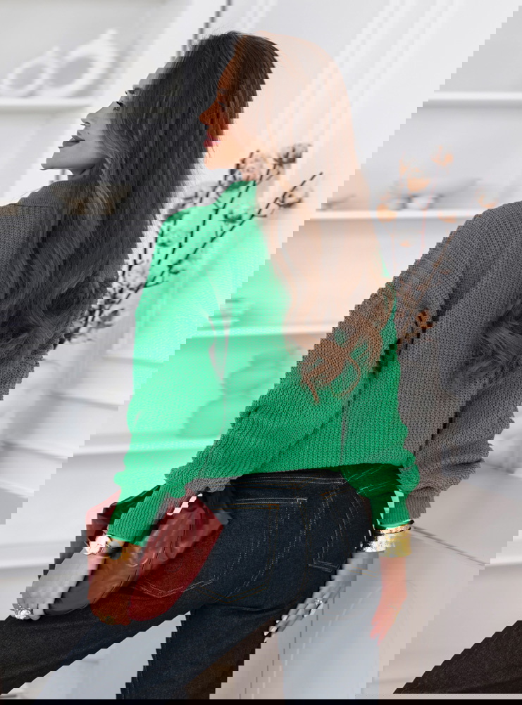 Sweter z kołnierzykiem Elvinia - butelkowa zieleń to doskonały wybór dla kobiet, które lubią klasykę w nowoczesnym wydaniu. Jego intensywny kolor i elegancki fason sprawiają, że każda stylizacja nabiera charakteru. Kołnierzyk dodaje całości subtelnego uroku, a luźny krój zapewnia wygodę i swobodę ruchów. To model, który sprawdzi się w wielu sytuacjach – od codziennych po bardziej wyjątkowe. Idealny na jesień, gdy chcesz wyglądać modnie, a jednocześnie czuć się komfortowo. Ten sweter to połączenie elegancji, energii i ponadczasowego stylu – dokładnie tego, czego potrzebujesz w swojej garderobie.