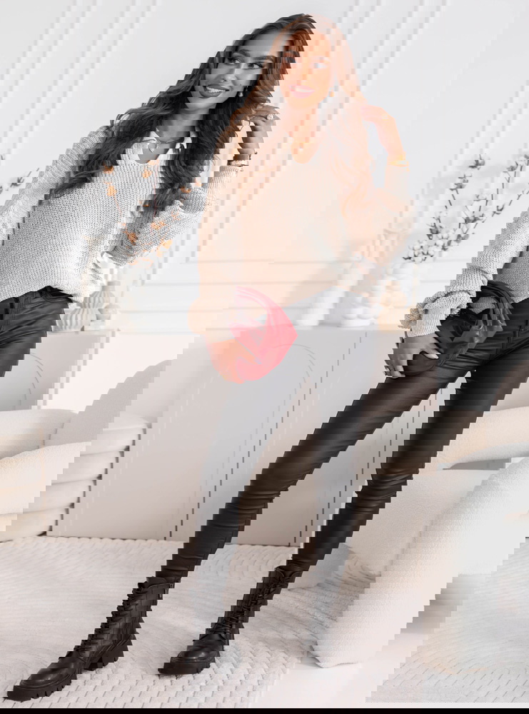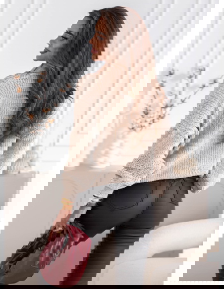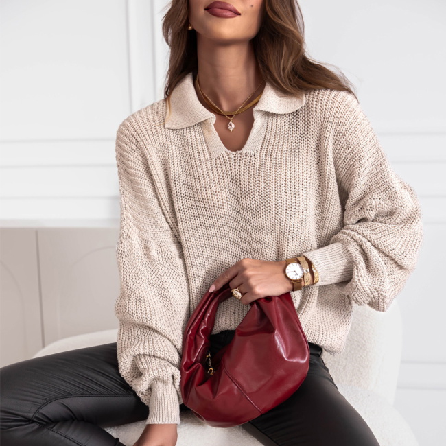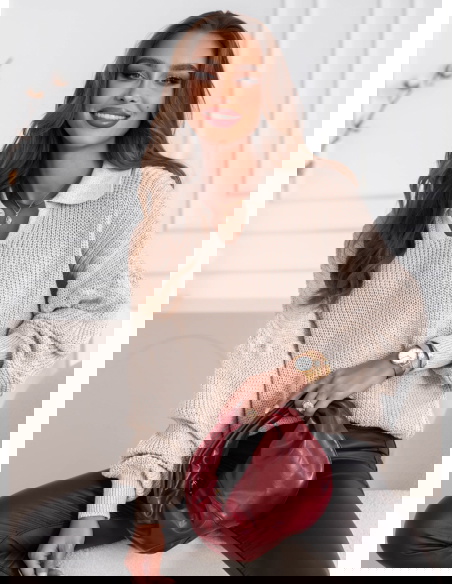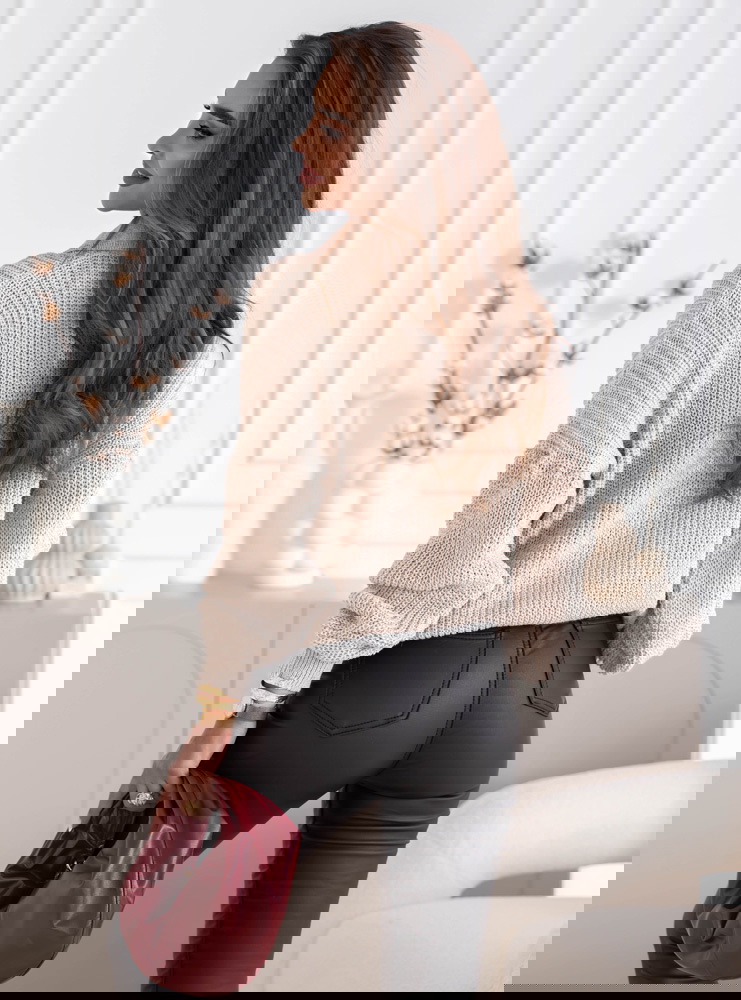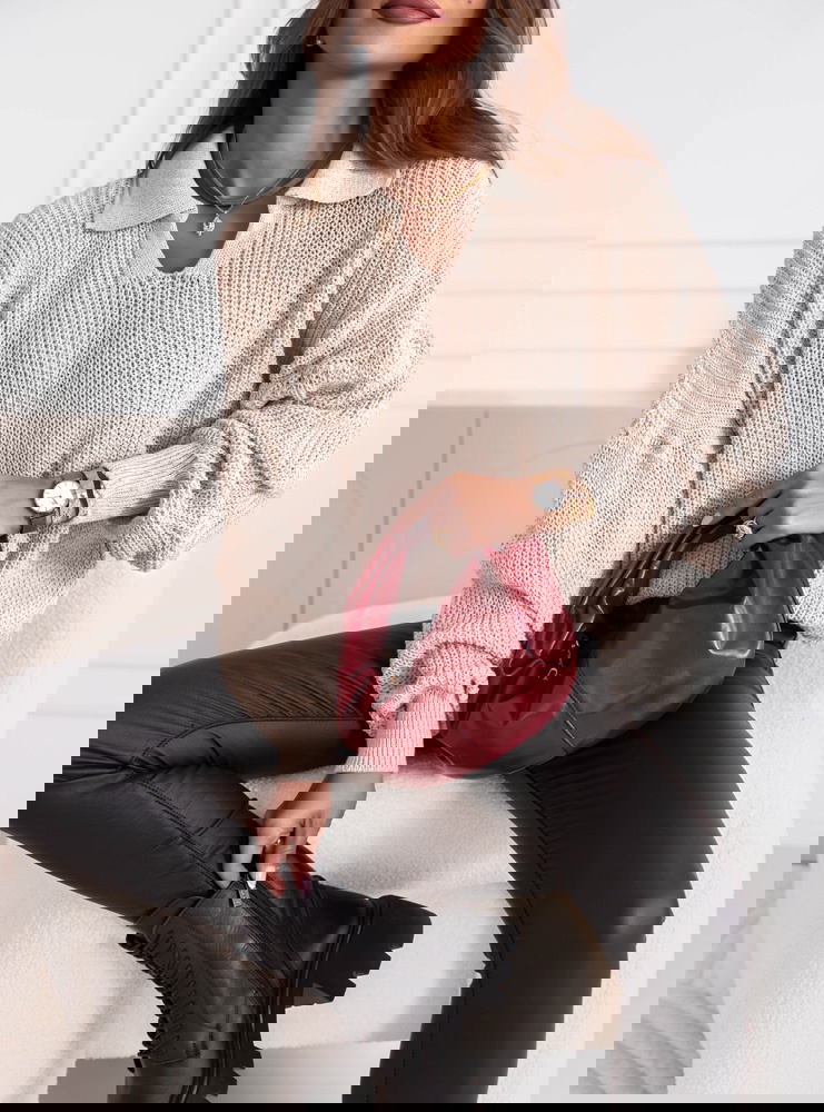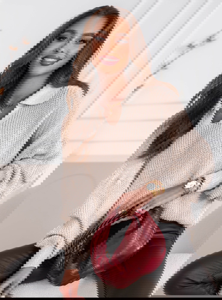 Beżowy sweter z kołnierzykiem Elvinia to klasyk, który nigdy nie wychodzi z mody. Jego ciepły, naturalny odcień doskonale wpisuje się w jesienno-zimowe trendy, tworząc przytulny i elegancki look. To model, który łączy w sobie wygodę i styl – idealny dla kobiet, które cenią ponadczasowe rozwiązania z nutą nowoczesności. Luźny fason sprawia, że sweter pięknie układa się na sylwetce, a kołnierzyk dodaje mu szyku i subtelnego charakteru. To propozycja, która doskonale łączy casualową prostotę z eleganckim wykończeniem. Beżowy kolor rozświetla twarz i tworzy harmonijną bazę do wielu stylizacji. To sweter, w którym poczujesz się modnie, ale przede wszystkim komfortowo. Doskonały na co dzień, do pracy, czy na spotkanie z przyjaciółmi – zawsze wygląda naturalnie i stylowo.