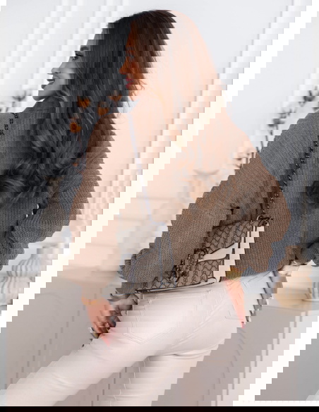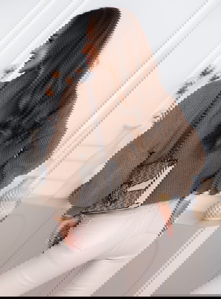 Czekoladowy sweter z kołnierzykiem Elvinia to kwintesencja jesiennej elegancji i ciepłego stylu. Jego głęboki, karmelowo-brązowy odcień wprowadza nutę wyrafinowania, a jednocześnie doskonale wpisuje się w aktualne trendy. To model, który emanuje subtelnym urokiem i sprawia, że każda stylizacja nabiera charakteru. Luźny krój swetra zapewnia wygodę, a kołnierzyk dodaje mu klasy i delikatnej formalności. To połączenie prostoty z nutką elegancji – idealne dla kobiet, które lubią wyglądać stylowo, ale naturalnie. Ciepły kolor przywodzi na myśl przytulne, jesienne wieczory, a miękka faktura swetra otula sylwetkę, tworząc efekt pełen harmonii. Ten model to niezawodny wybór na każdy dzień – wygodny, kobiecy i zawsze modny.