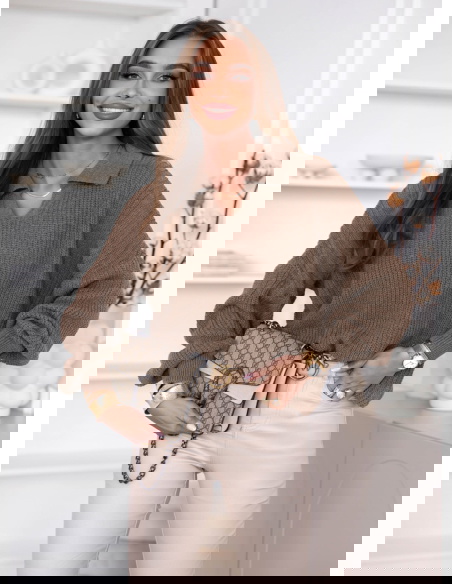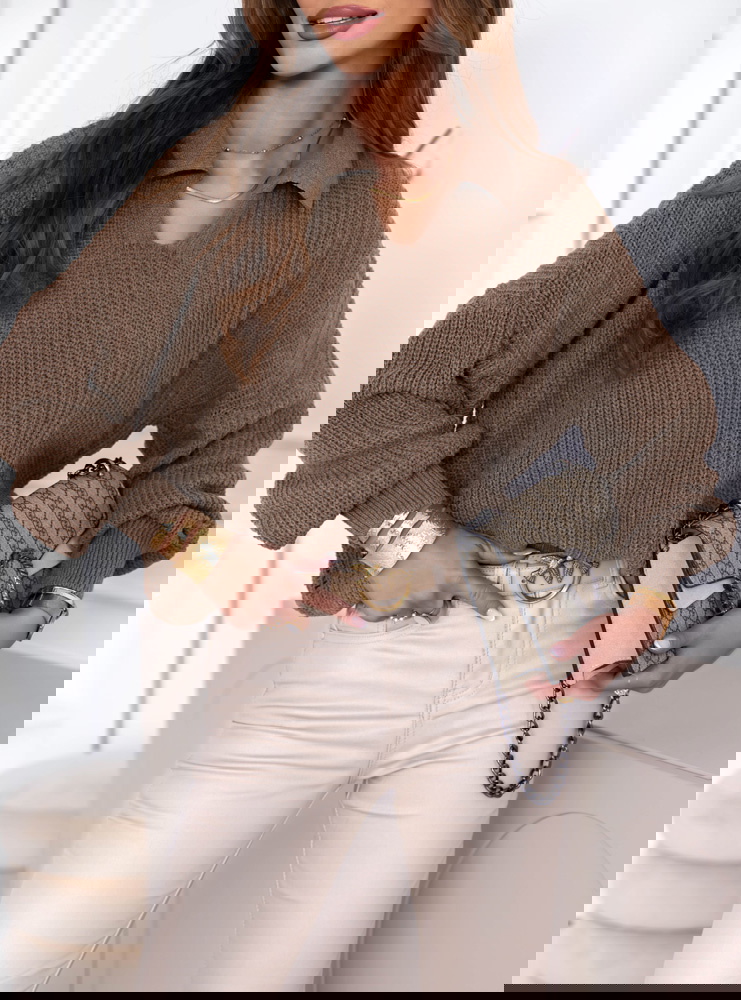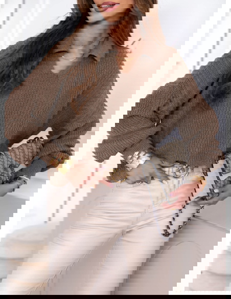 Czekoladowy sweter z kołnierzykiem Elvinia