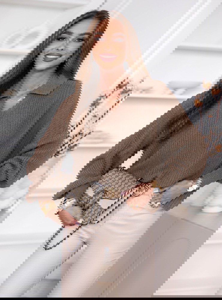 Czekoladowy sweter z kołnierzykiem Elvinia to niezbędny element jesiennej garderoby. Zachwyca prostotą, ale jednocześnie dodaje klasy każdej stylizacji. Jego ciepły kolor, elegancki kołnierzyk i wygodny fason sprawiają, że to model, po który będziesz sięgać bardzo często. Doskonale pasuje do codziennych, biurowych i weekendowych looków. To połączenie komfortu, kobiecego wdzięku i ponadczasowego stylu. Idealny wybór, jeśli lubisz modę, która łączy elegancję z naturalną swobodą.